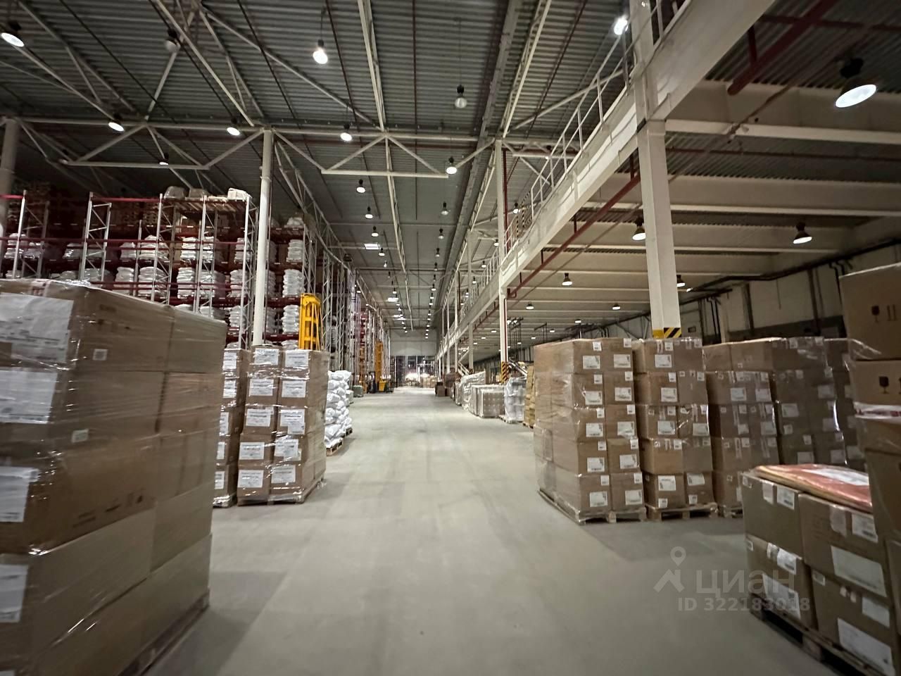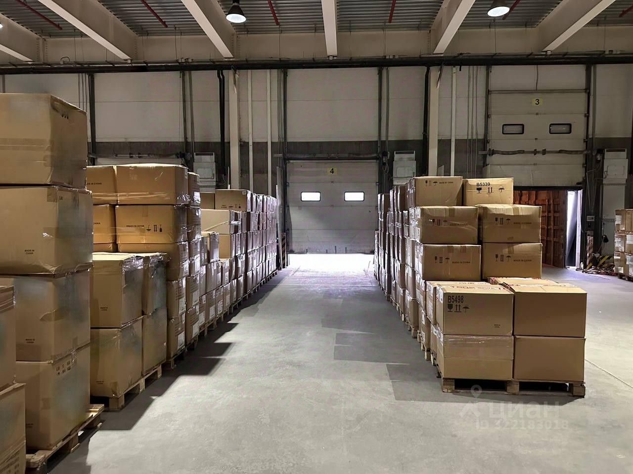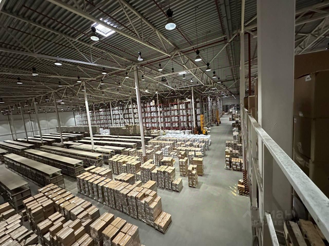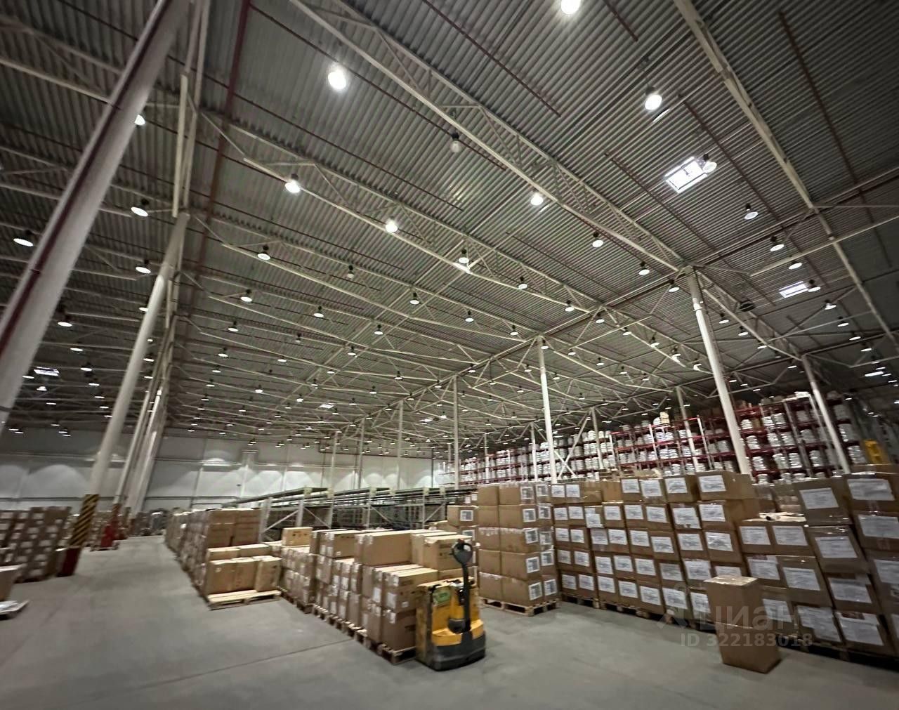 Склад теплый. Высота потолков 14 метров.