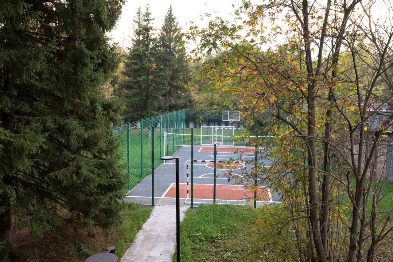 На собственной огороженной охраняемой территории есть многофункциональная спортивная площадка и места для отдыха. Поблизости расположены живописные заповедные леса и пруд с благоустроенными экотропами в пешей доступности для тех, кто любит проводить время на свежем воздухе.