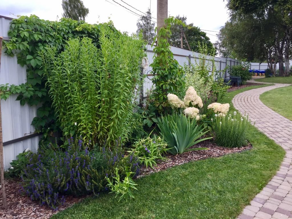 Высокий непрозрачный забор со всех сторон по периметру участка.