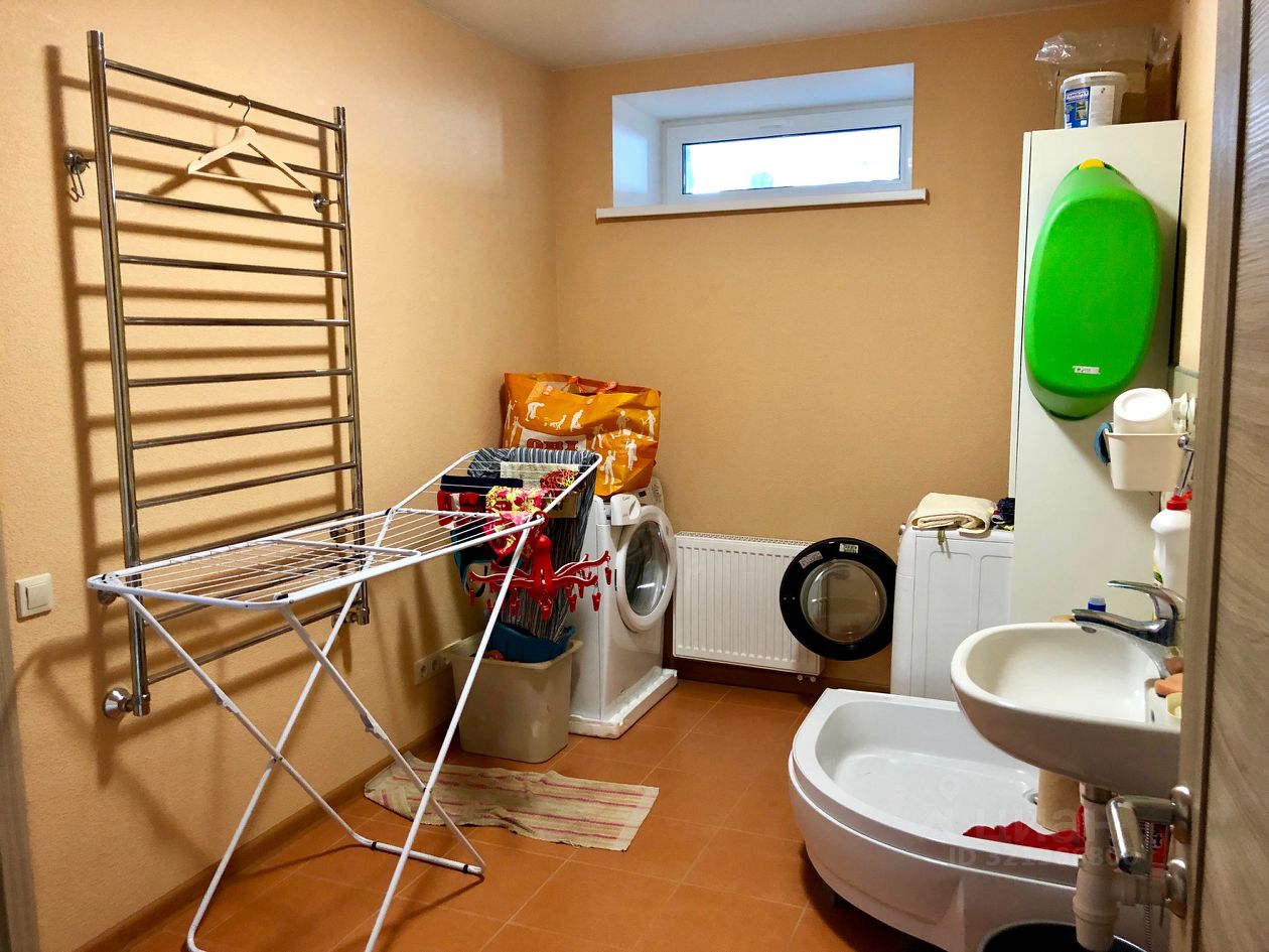 На первом этаже ванная комната-санузел, на втором этаже помимо родительской ванной, есть еще детская ванная- санузел. В подвале сауна с санузлом и душевой.