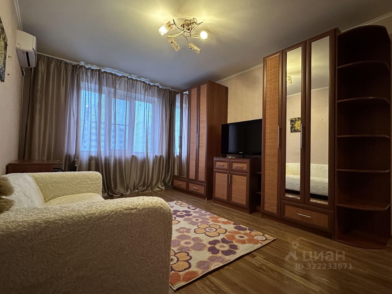 Уютная чистая квартира, оборудована всем необходимым для комфортной жизни. В квартире есть кондиционер, стиральная машина оснащена функцией сушки. Очень просторная кухня, балкон застеклен и много закрытых мест для хранения вещей. В комнате разделена зона сна от зала.