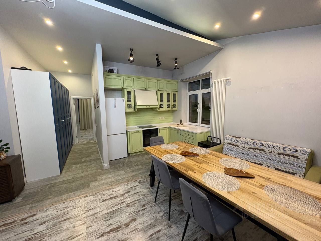 - общая площадь - 86 кв.м., - потолок многоуровневый от 3,2 до 5 метров - большая гостиная-столовая - 10+17,4=27,4 кв.м. - кухня с встроенной итальянской мебелью. - сан/узел совмещен - 6,9 кв.м. - спальня с балконом - 16,5 кв.м., - детская комната - 12,3 кв.м., 5 метров потолок , второй совмещённый сан.узел., кровать чердак. - прихожая+ холл - 14,2 кв.м. - Французкие окна на одну сторону, выходят на тихую солнечную сторону во двор: - хороший качественный ремонт - квартира продается с встроенной мебелью и техникой, все остальное обсуждаем на показе.