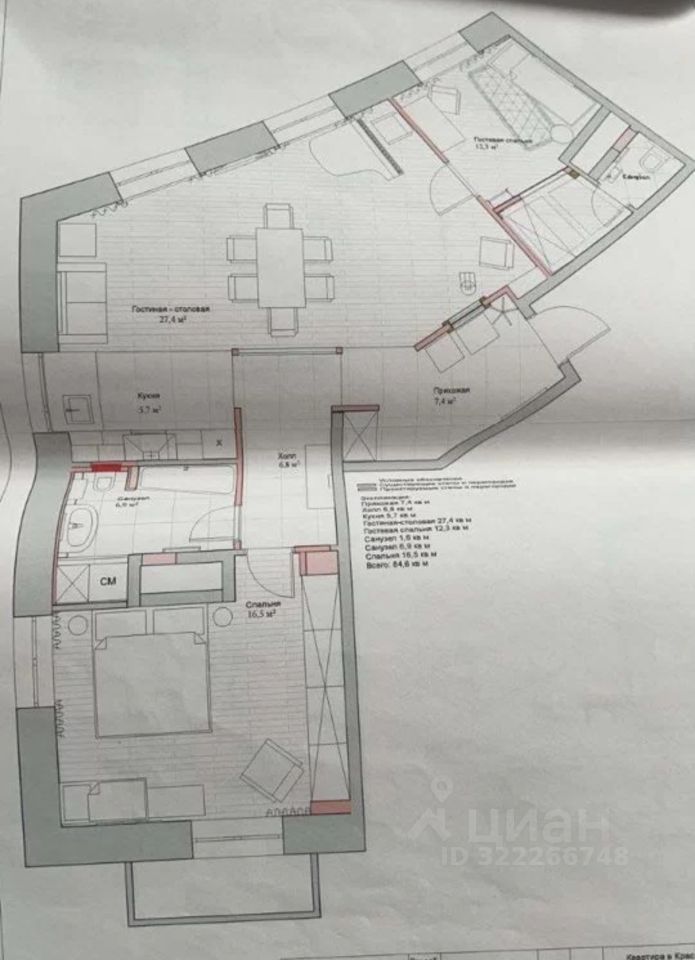 - общая площадь - 86 кв.м., - потолок многоуровневый от 3,2 до 5 метров - большая гостиная-столовая - 10+17,4=27,4 кв.м. - кухня с встроенной итальянской мебелью. - сан/узел совмещен - 6,9 кв.м. - спальня с балконом - 16,5 кв.м., - детская комната - 12,3 кв.м., 5 метров потолок , второй совмещённый сан.узел., кровать чердак. - прихожая+ холл - 14,2 кв.м.
