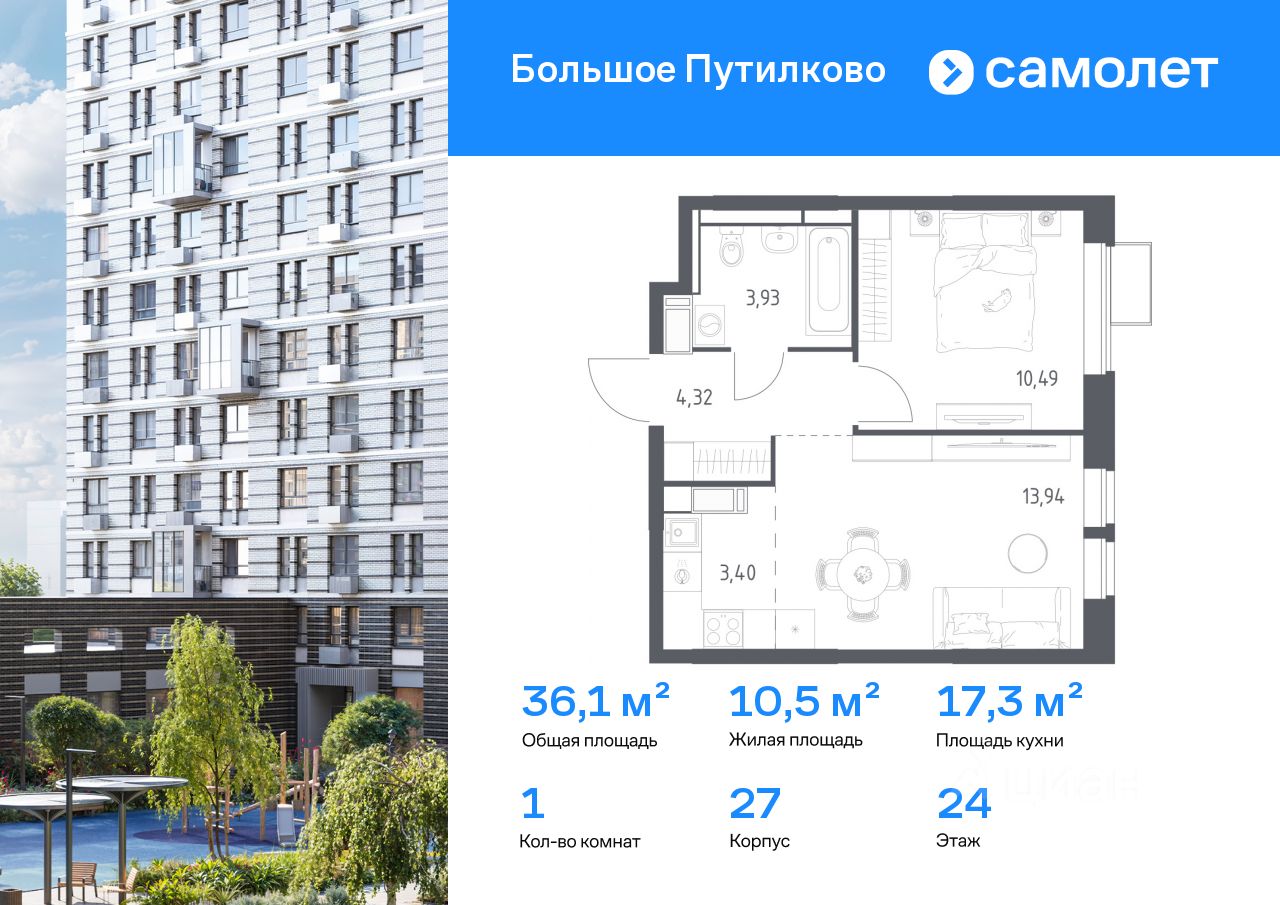 Строим кварталы для жизни с заботой о будущем. Предлагается 1-комнатная квартира комфорт-класса 36,08 кв.м в корпусе 27 на 24 этаже, в ЖК ''Большое Путилково'' Квартира с чистовой отделкой. Доступность дополнительных опций уточняйте у застройщика.