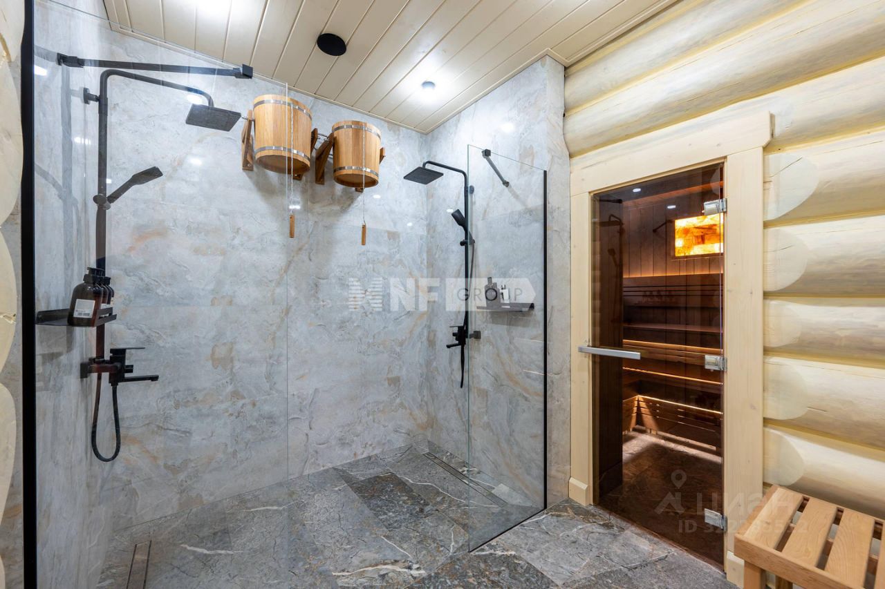 Баня из сруба 165 кв.м., (Гостиный зал с камином, спальня, су, баня, душевая). В бане есть отдельная квартира для персонала: спальня, су. Так же на участке есть 2 въезда с автоматическими воротами.