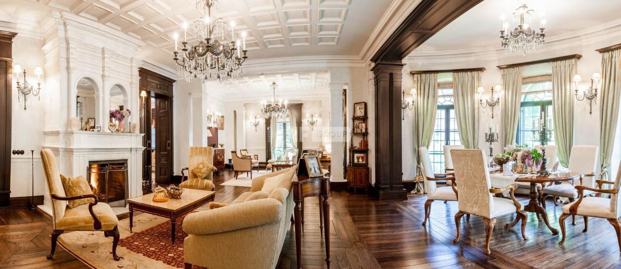 Цокольный этаж: просторная SPA-зона с бассейном, сауной, душевыми, санузлом, а также постирочная, помещение для персонала с отдельным санузлом и выходом на участок. Первый этаж: элегантная прихожая с гардеробной, холл, гостевой санузел, уютная гостевая спальня, оранжерея-кабинет, изысканный каминный зал, светлая гостиная, столовая, кухня с выходом на участок, кладовая. Второй этаж: роскошная мастер-спальня с камином, собственным санузлом, балконом и гардеробной, две дополнительные спальни, санузел, игровая комната, гардеробная. Мансарда: просторный домашний кинотеатр, гардеробная, уединенная спальня с камином и санузлом.