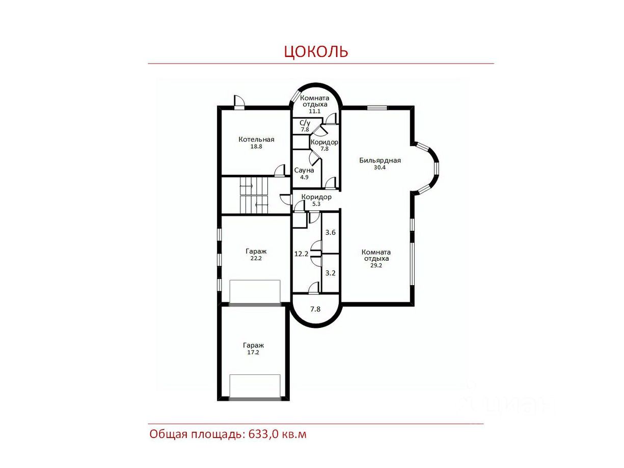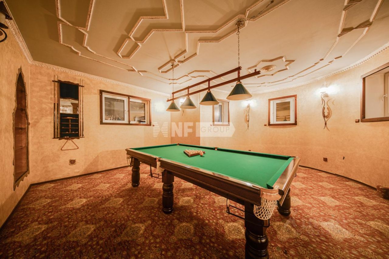 1 этаж: прихожая, холл, кухня-столовая, гостиная с камином и вторым светом, гостевая спальня с санузлом, блок для персонала или детский блок с двумя спальнями, санузел, гараж на 2 машиноместа, 2 этаж: мастер-спальня с санузлом и ванной комнатой, кабинет, две детские спальни с санузлами. Мансарда: игровая комната, спальня, две сезонные гардеробные, санузел. Цоколь: зона отдыха с бильярдной, сауна, душевая, с/у, винный погреб, комната для помощника, постирочная, котельная.