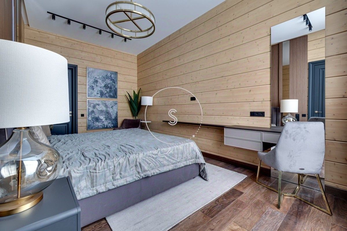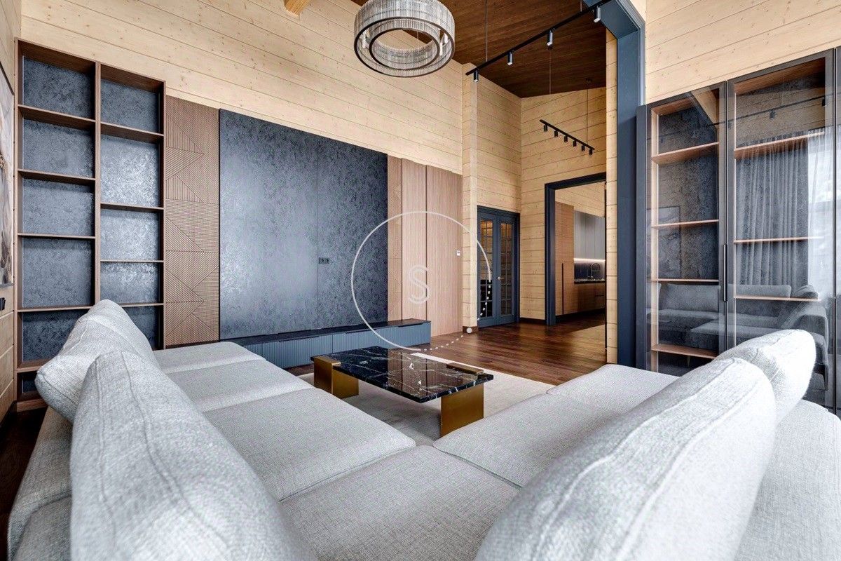Новый красивый дом площадью 270 кв.м. на участке 15 сот. В 15 км. от города по Новорижскому шоссе. На участке есть отдельное строение площадью 120 кв.м. (гараж на 2 м/м, полноценная квартира для персонала, баня). Интерьер в современном стиле, дорогая мебель и техника. Планировка дома: прихожая с большим встроенным шкафом, кухонная зона - столовая с выходом на уютную террасу, гостевой санузел, гостиная комната, три спальни со своими санузлами (2 спальни с гардеробными комнатами, 3-я спальня большой встроенный шкаф). Высота потолка местами доходит до 5 м. Дом готов полностью под ключ - заезжай и живи. Лот 4392
