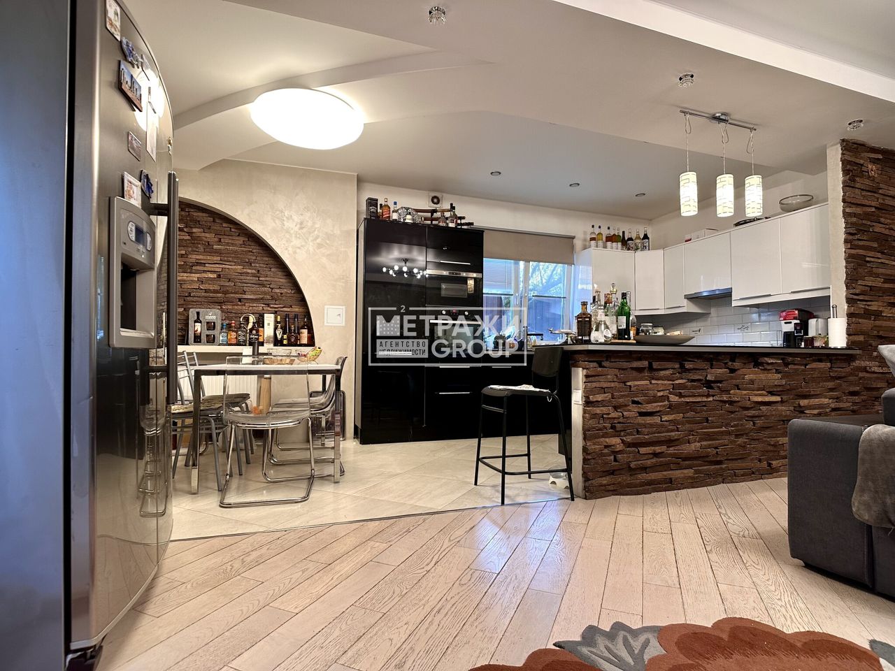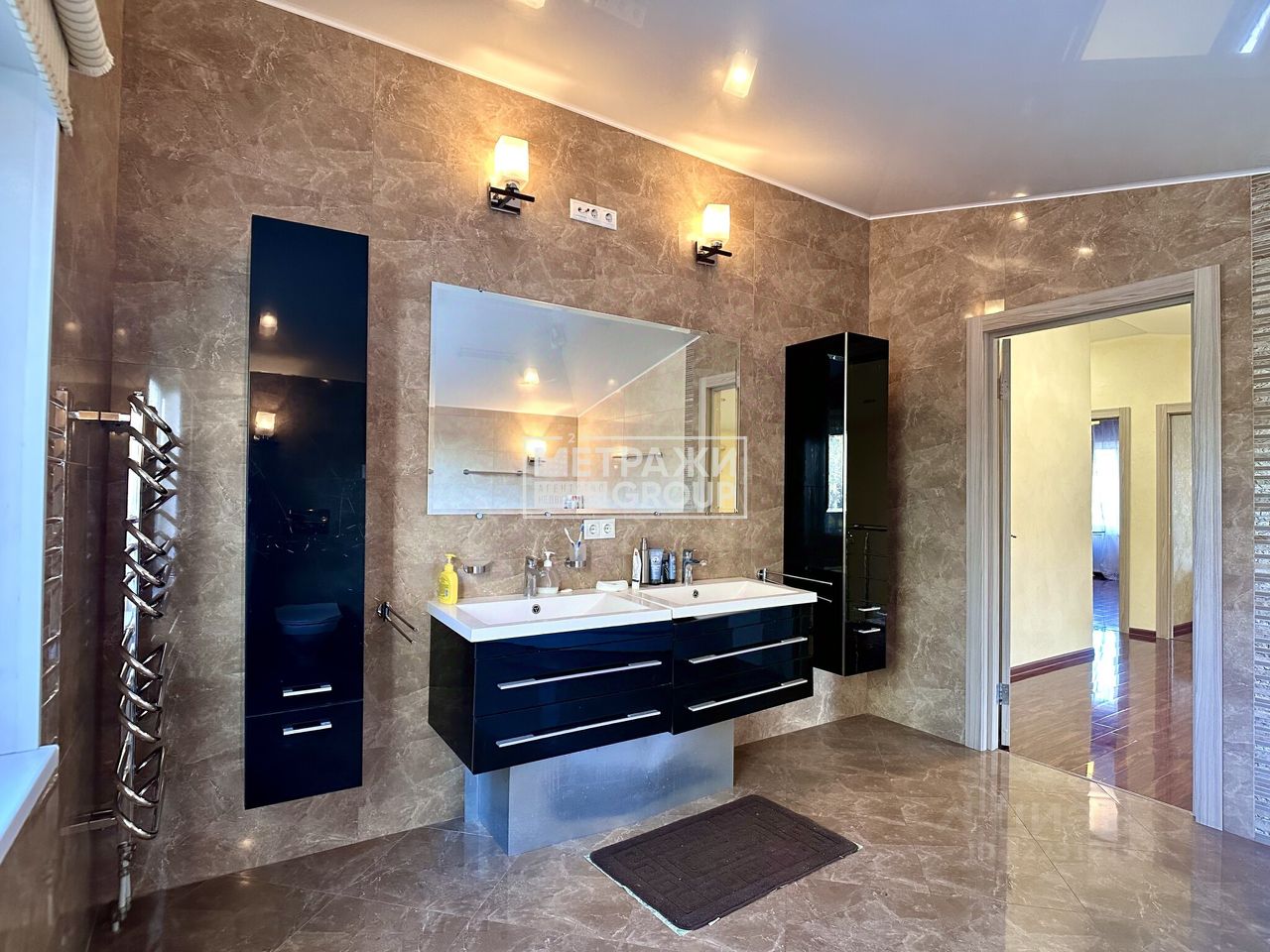 В доме: на первом этаже: -большая кухня-гостиная, общей площадью 70 кв.м. - совмещенный санузел - просторная прихожая - отдельный вход в гараж, площадью 30 кв.м. с откатными воротами. на втором этаже: - совмещенный санузел с большой ванной, и двумя отдельными раковинами, площадью 15 кв.м. - три изолированных спальных комнат Дизайнерский ремонт позволит новым владельцам сразу заселиться и наслаждаться комфортом. Стены отделаны венецианской штукатуркой, натяжные и гипсокартонные потолки, паркетная доска и керамогранит с теплым полом, итальянские люстры и дорогая мебель (все остается новым владельцам). Отопление обеспечивается индивидуальным газовым котлом.