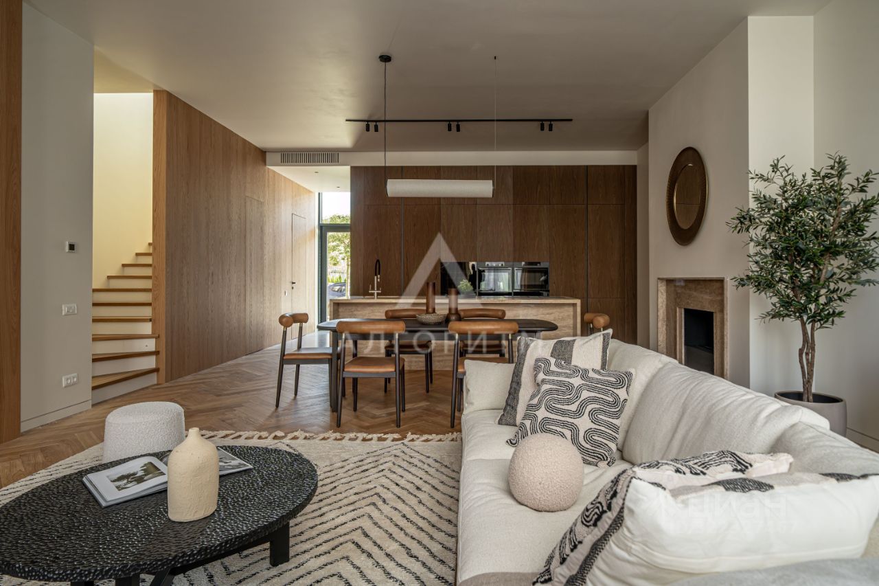 высокие потолки 3,5 метра, панорамные окна в пол, в отделке использованы исключительно натуральные экологичные материалы: натуральный камень - травертин и натуральное дерево - дуб, премиальная бытовая техника ASKO, Elica, Liebherr, Omoikiri канальное кондиционирование во всех комнатах, немецкие смесители Grohe, двери скрытого монтажа Union высотой 2.7 метра, весь технический свет Центрсвет, инженерная доска в укладке елочкой Finex лестница из массива дуба все столярные изделия из натурального шпона дуба.