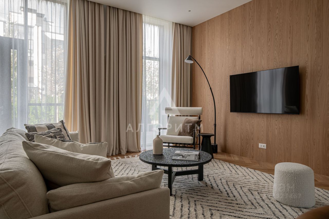 высокие потолки 3,5 метра, панорамные окна в пол, в отделке использованы исключительно натуральные экологичные материалы: натуральный камень - травертин и натуральное дерево - дуб, премиальная бытовая техника ASKO, Elica, Liebherr, Omoikiri канальное кондиционирование во всех комнатах, немецкие смесители Grohe, двери скрытого монтажа Union высотой 2.