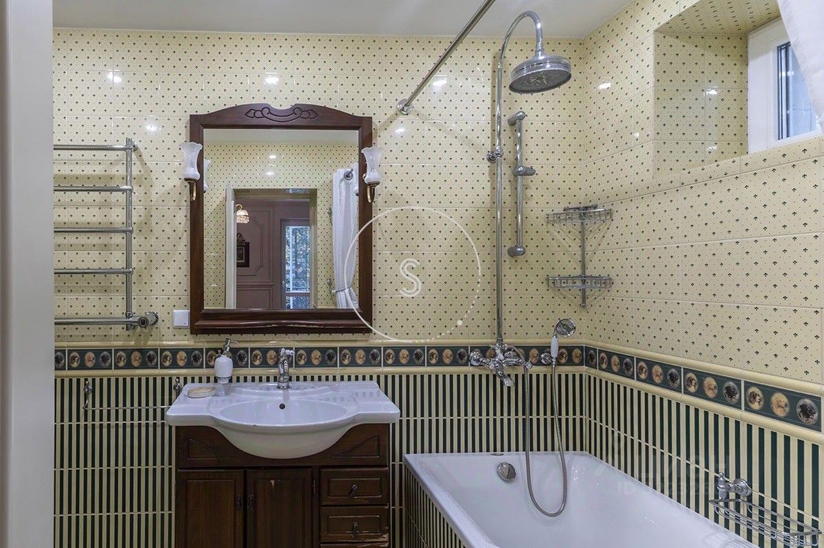 Лот 4424. Предлагается дом 380 кв.м. расположенный на закрытой, охраняемой территории Пансионата Петрово-Дальнее (Управ. делами Президента). Въезд по пропускам. К Вашим услугам вся инфраструктура Пансионата (открытые теннисные корты, поля для игр в футбол и волейбол, спортзал, банный комплекс с финской сауной и хамам, бассейн с водопадом, места для пикника и рыбалки, рестораны, бары), а также территория 70 Га с прогулочными дорожками, набережной вдоль рек Москва и Истра. Дом находится на лесном участке 22 сотки. Планировка: цоколь - бассейн, хамам, душевая, санузел, комната отдыха, гардеробная, кладовые. 1 этаж - холл, спальня (без санузла с кондиционером), гостиная с камином, кухня изолирована (с выходом на террасу), санузел.
