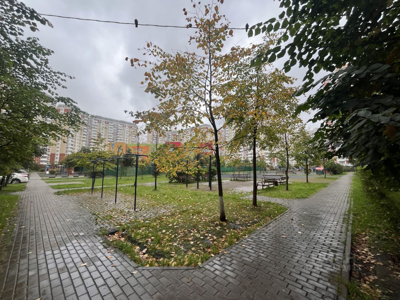 Благоустроенный ухоженный двор, большая детская и спортивная площадки, достаточно места для парковки вокруг дома и вдоль дороги.