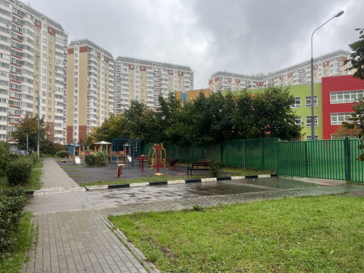 Благоустроенный ухоженный двор, большая детская и спортивная площадки, достаточно места для парковки вокруг дома и вдоль дороги.