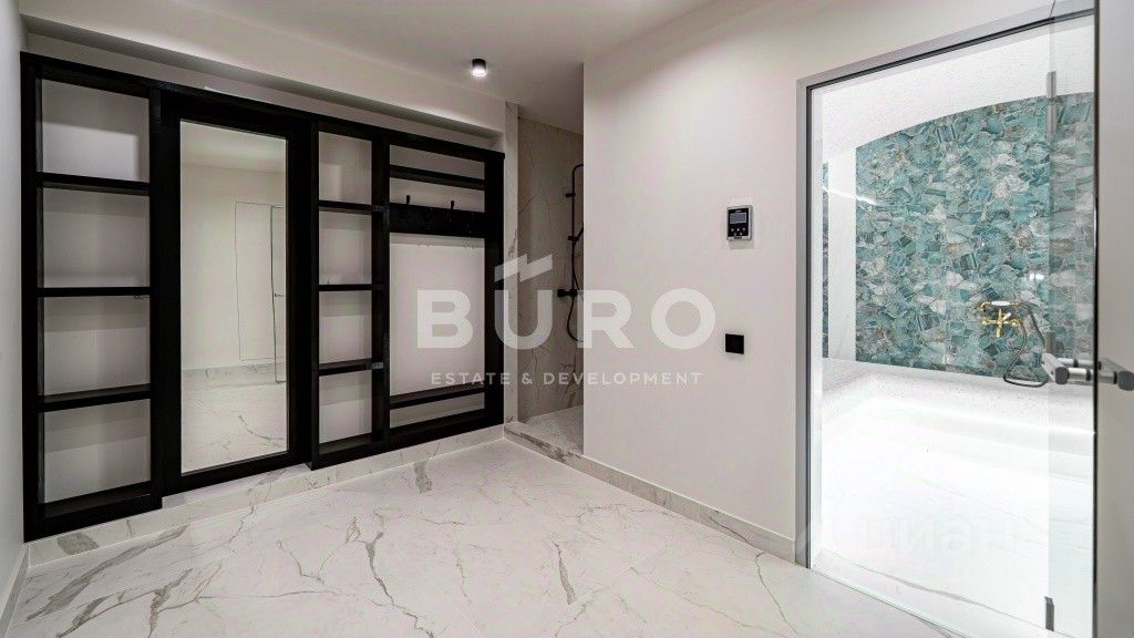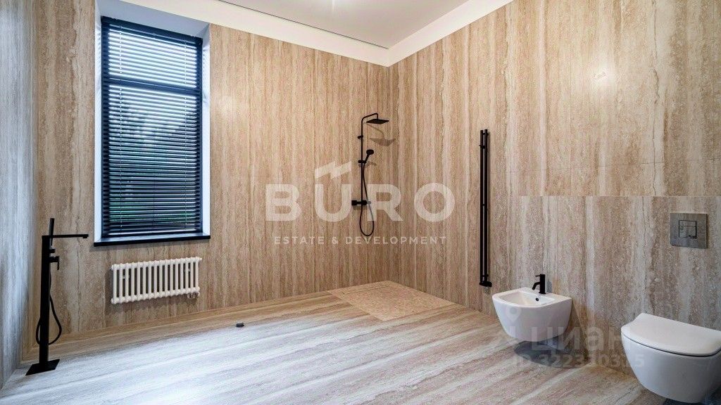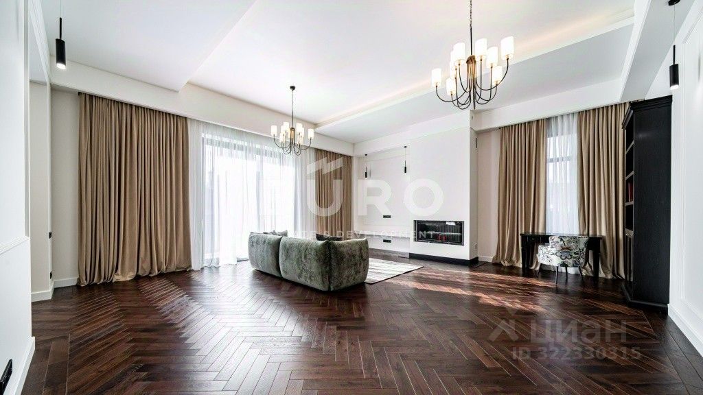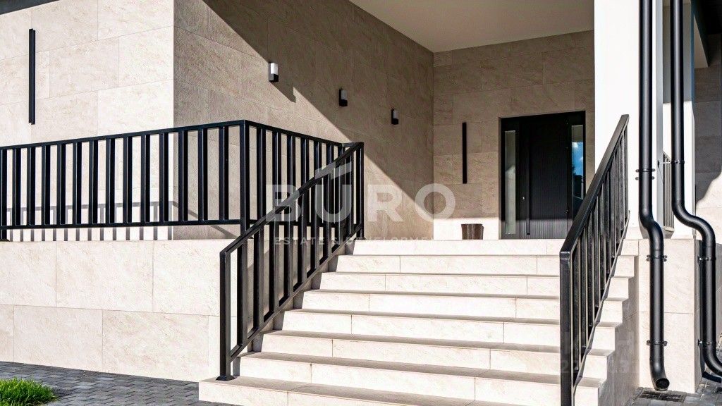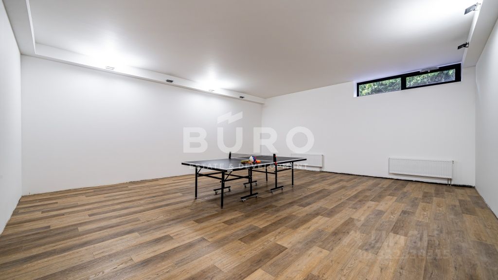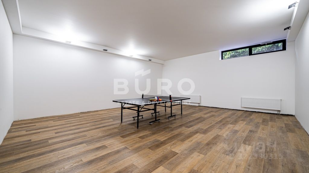 Продуманная планировка включает: большую гостиную с камином и выходом на лоджию, мастер-спальню с ванной, 2 спальни со своими санузлами, кабинет, который можно сделать дополнительной спальней. На цокольном этаже: сезонная гардеробная, винный погреб, СПА-зона с хаммамом и тренажерным залом. Имеется отдельный блок для персонала.