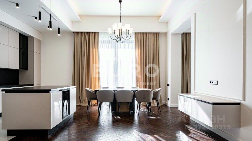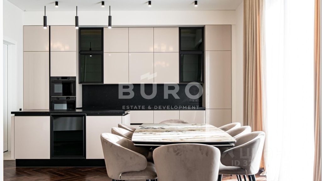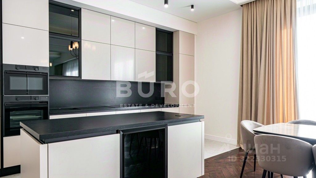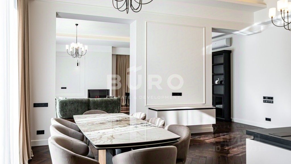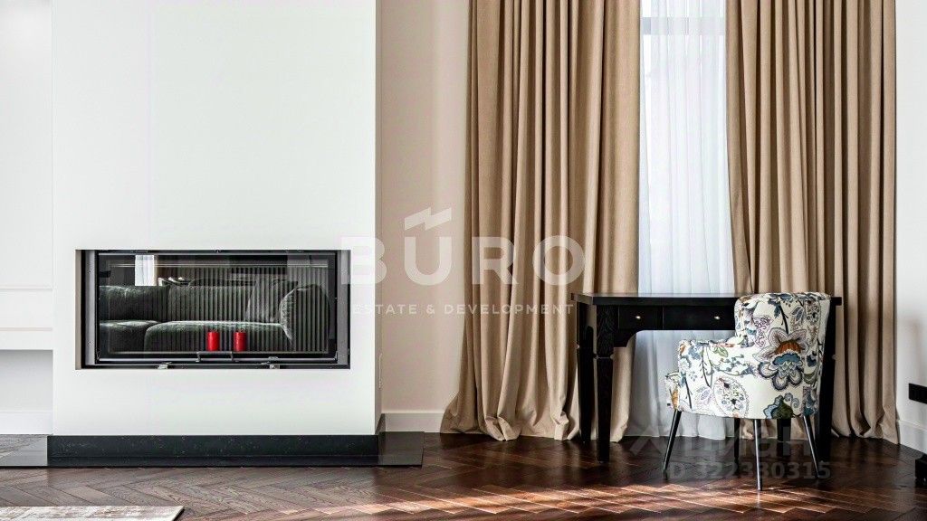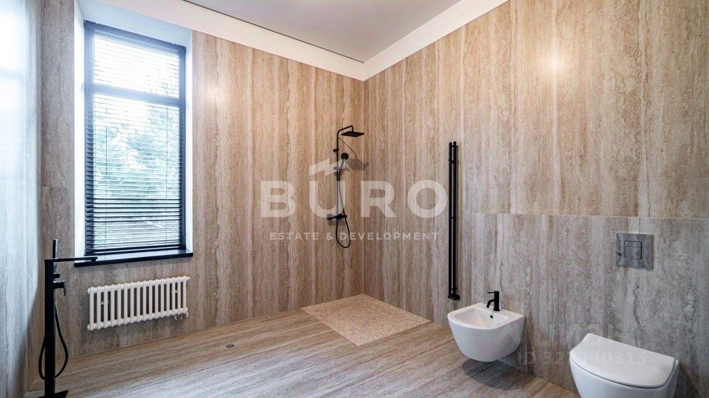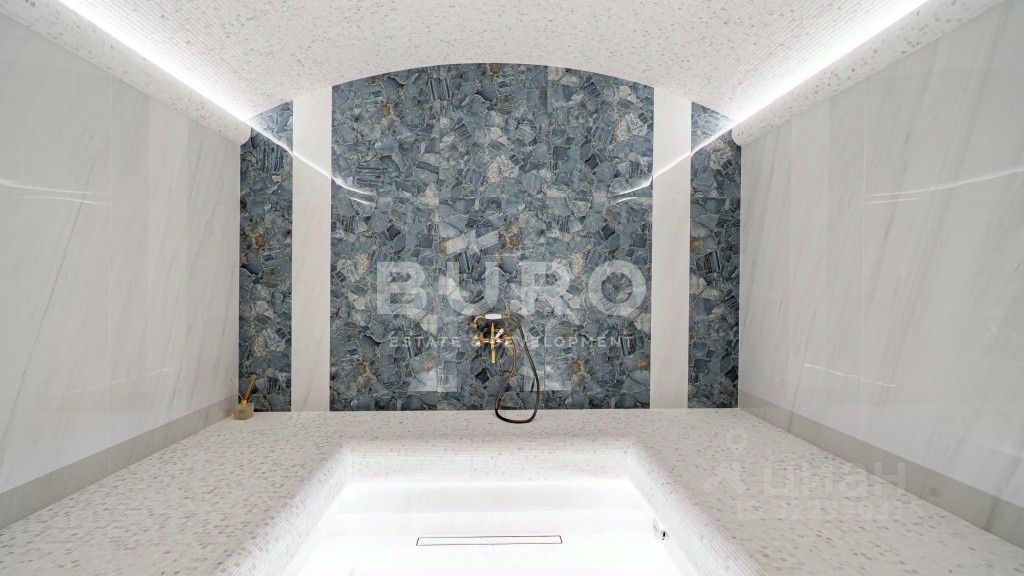 Продуманная планировка включает: большую гостиную с камином и выходом на лоджию, мастер-спальню с ванной, 2 спальни со своими санузлами, кабинет, который можно сделать дополнительной спальней. На цокольном этаже: сезонная гардеробная, винный погреб, СПА-зона с хаммамом и тренажерным залом. Имеется отдельный блок для персонала.