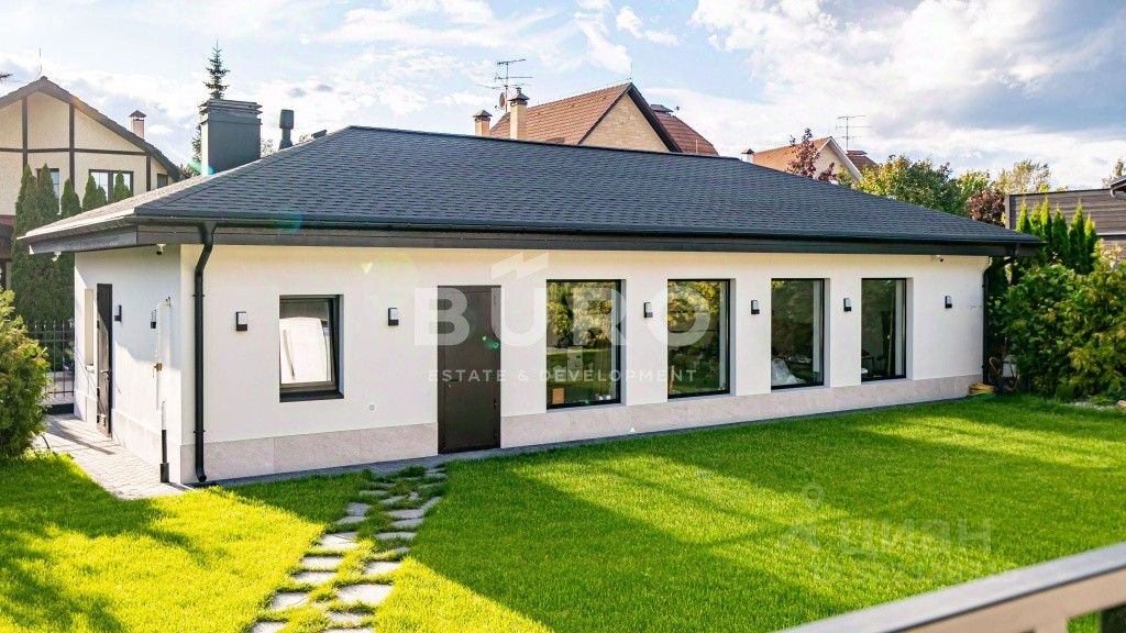 Одноэтажный новый дом с 4-мя спальнями, общей площадью 885 м², представлен ''под ключ'' и расположен на видовом участке 15 соток.