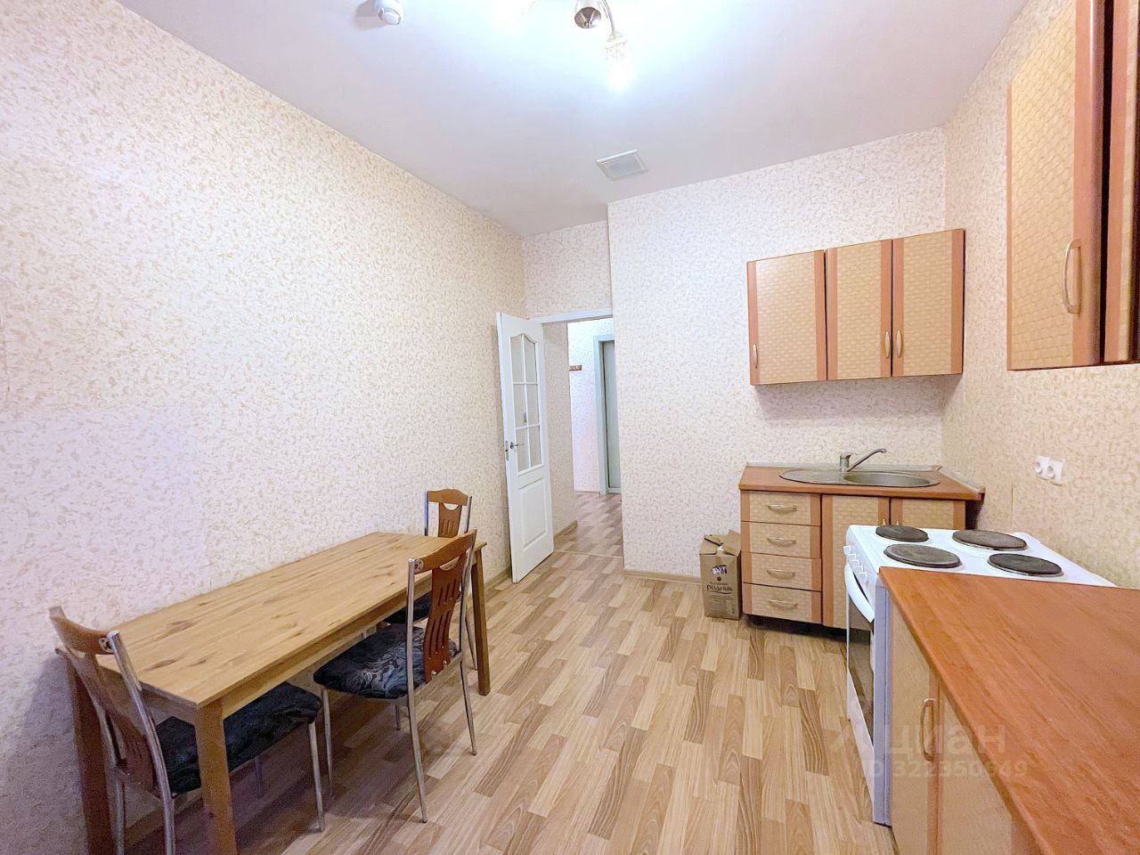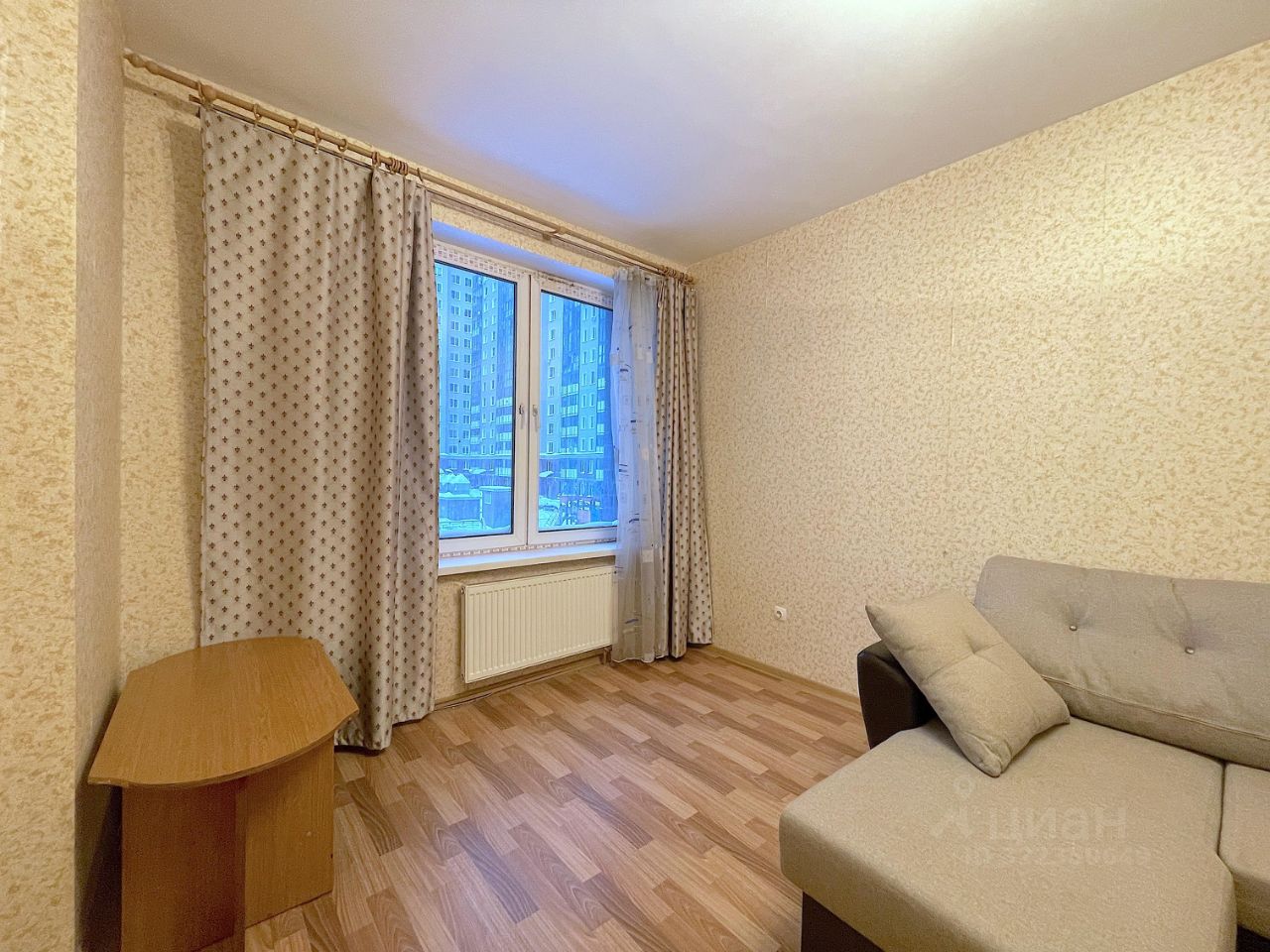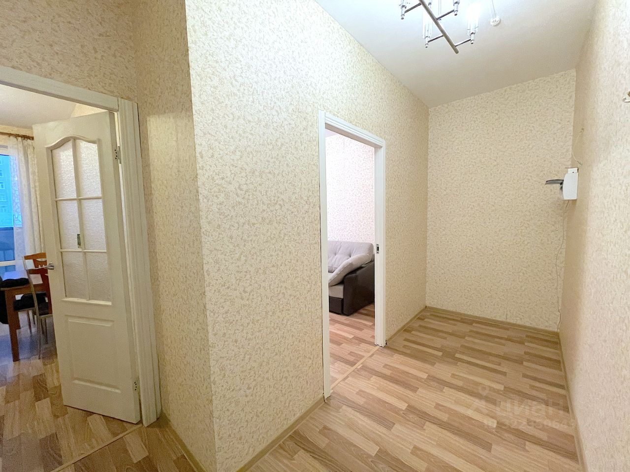 В комнате просторный раскладной диван, стол и зеркальный большой шкаф. В прихожей зеркало и крючки для верхней одежды. Также в квартире есть место для вашей мебели.