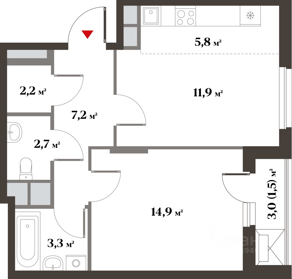 продам 2-к, аллея Золотая, 110 980 971 ₽