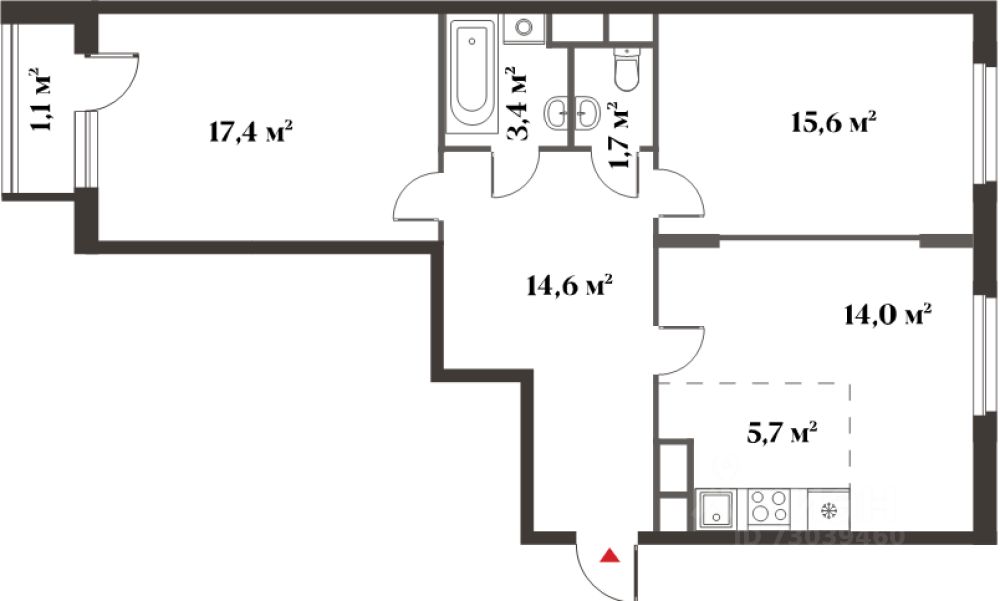 продам 1-к, аллея Золотая, 110 094 443 ₽