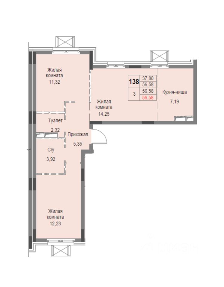 Просторная светлая распашонка: 2 изолированные комнаты и большая совмещенная гостиная-кухня с двумя окнами. Главная особенность — свобода планировки. Вы можете создать идеальное пространство под себя: выделить кабинет, третью спальню или гардеробную.