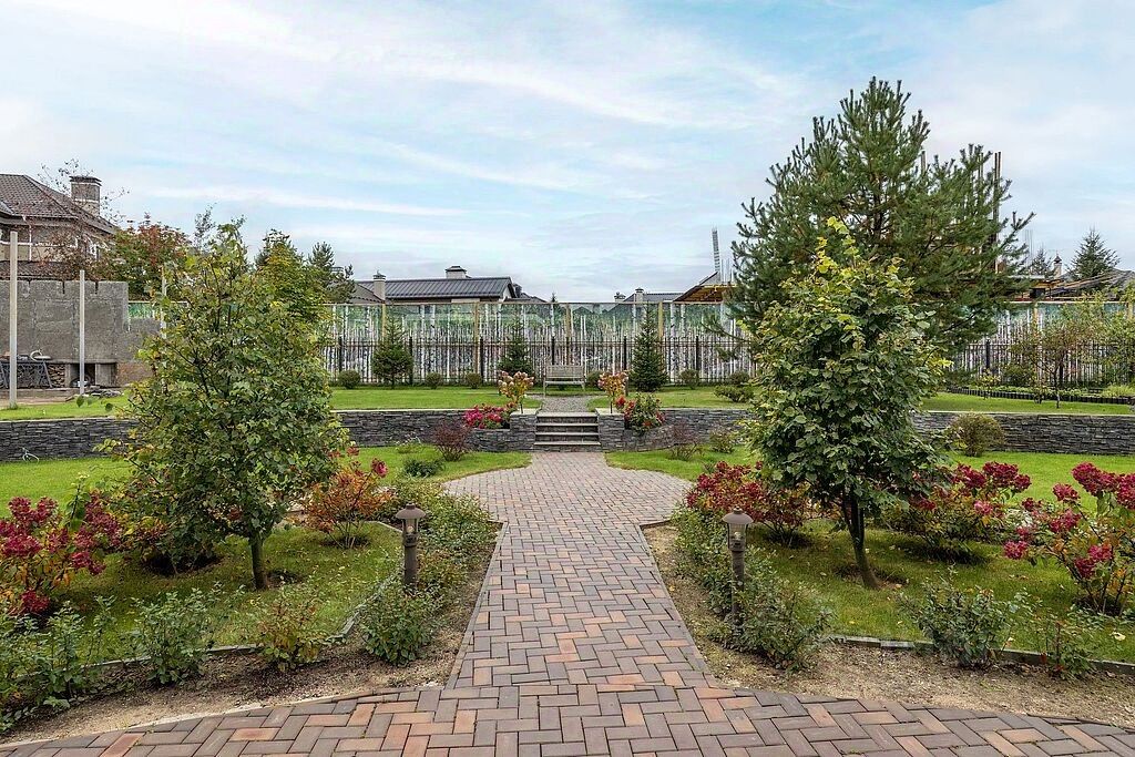 На участке выполнен ландшафтный дизайн, высажены декоративные растения, установлено уличное освещение, вымощены удобные дорожки. Имеется навес для нескольких автомобилей.