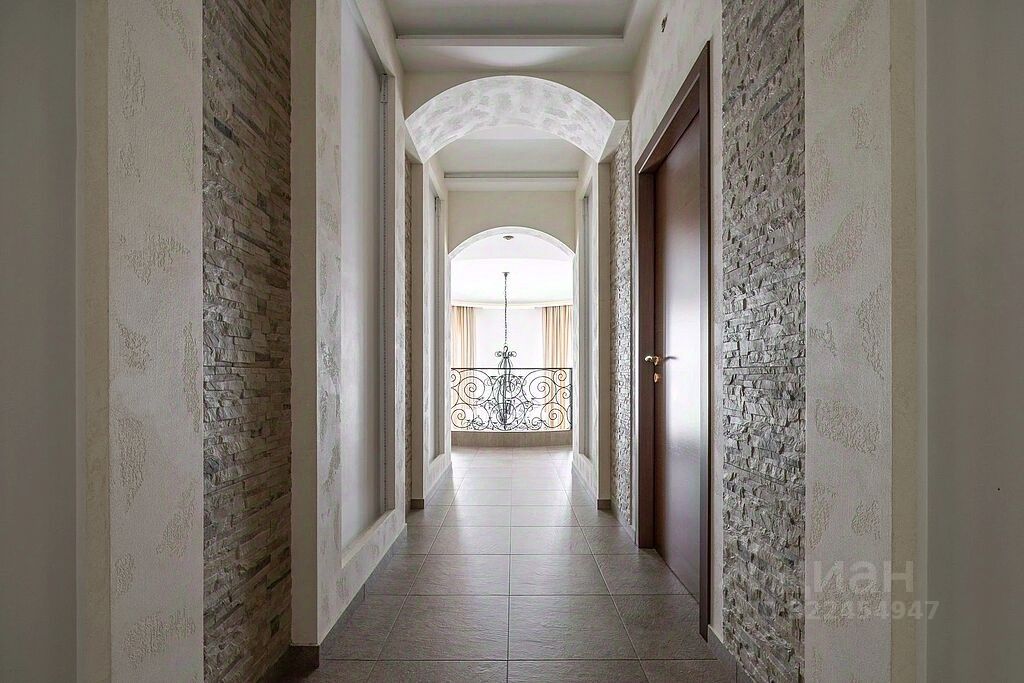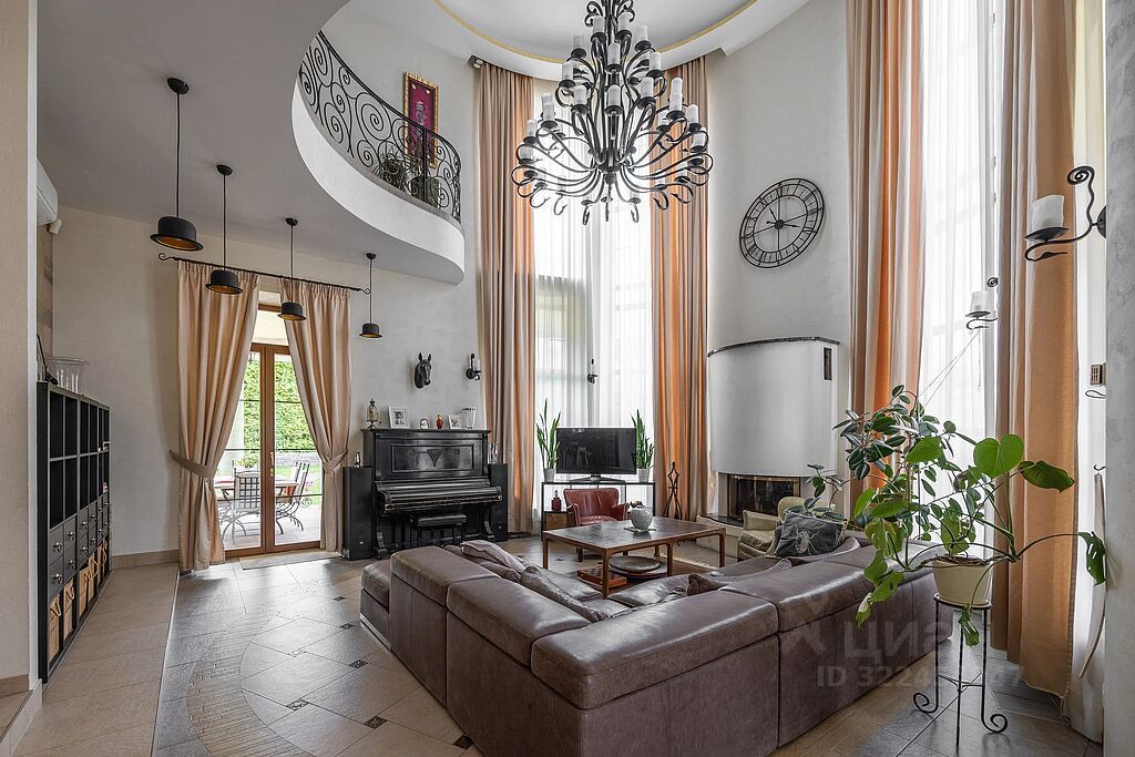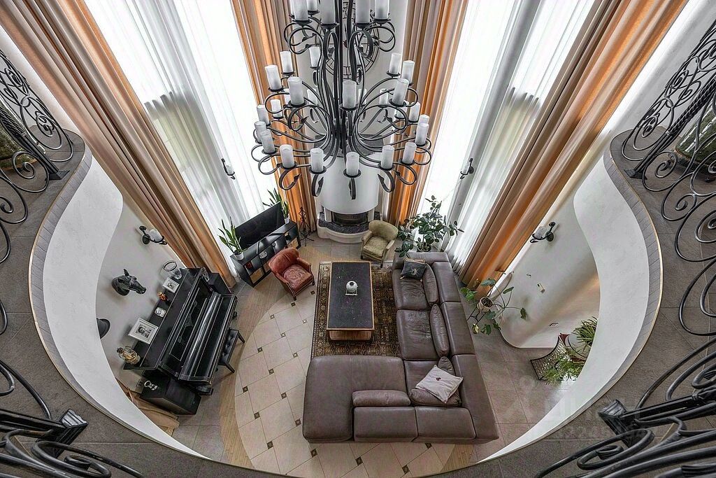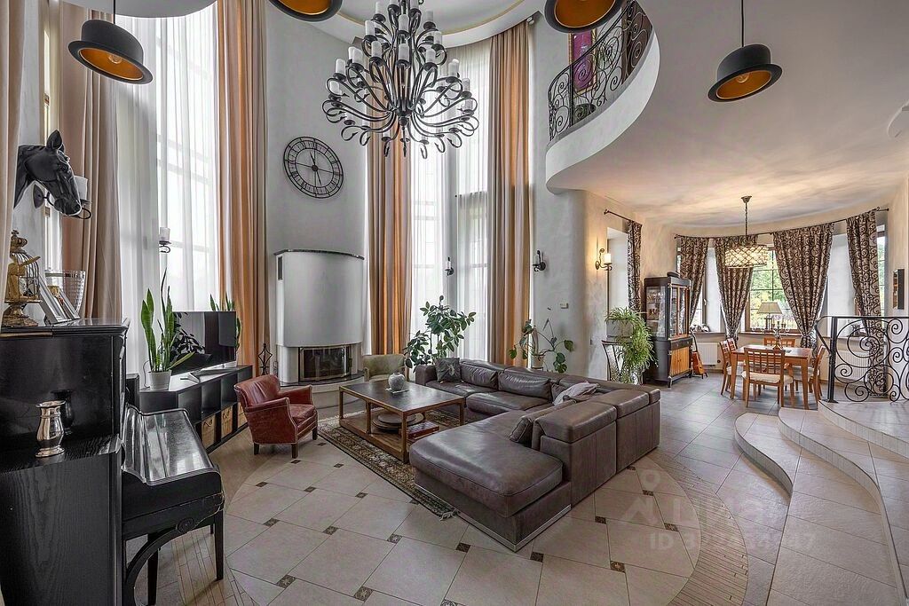 Внутреннее пространство вмещает просторную гостиную с камином, кабинет, 4 спальни и 5 санузлов.