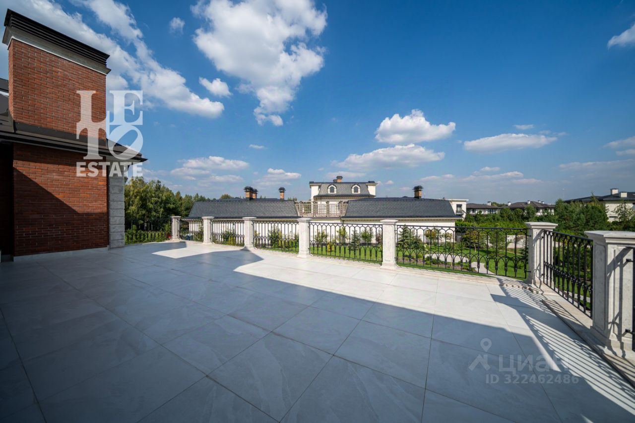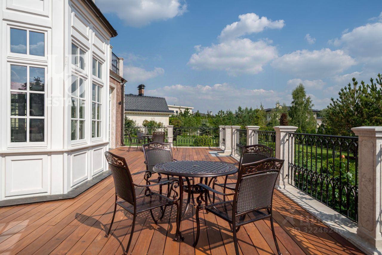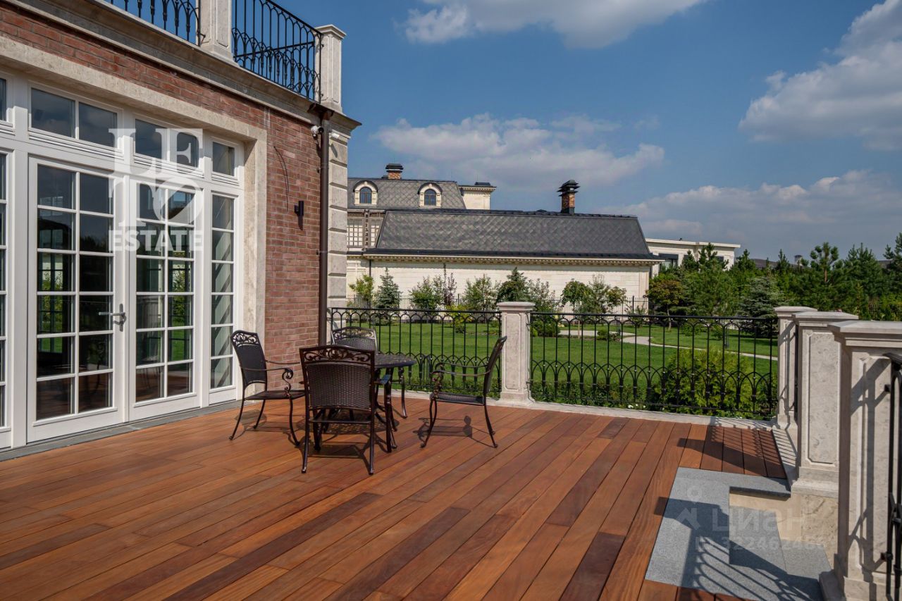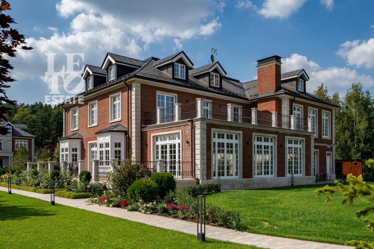 Фасад дома выполнен в лучших традициях английской классики, а к нему примыкает просторный гараж на четыре машиноместа. Для отдыха и приема гостей предусмотрены две роскошные террасы площадью 75 и 60 кв. м, а также уютная зона барбекю с обеденной группой.