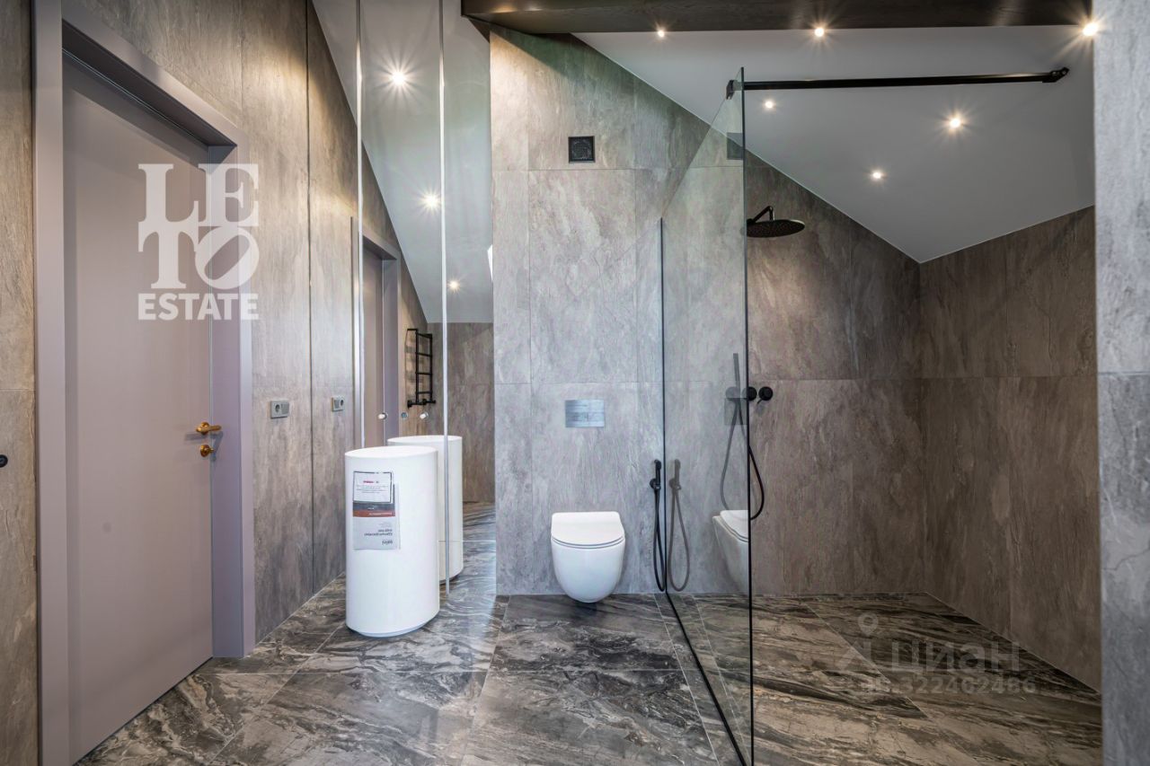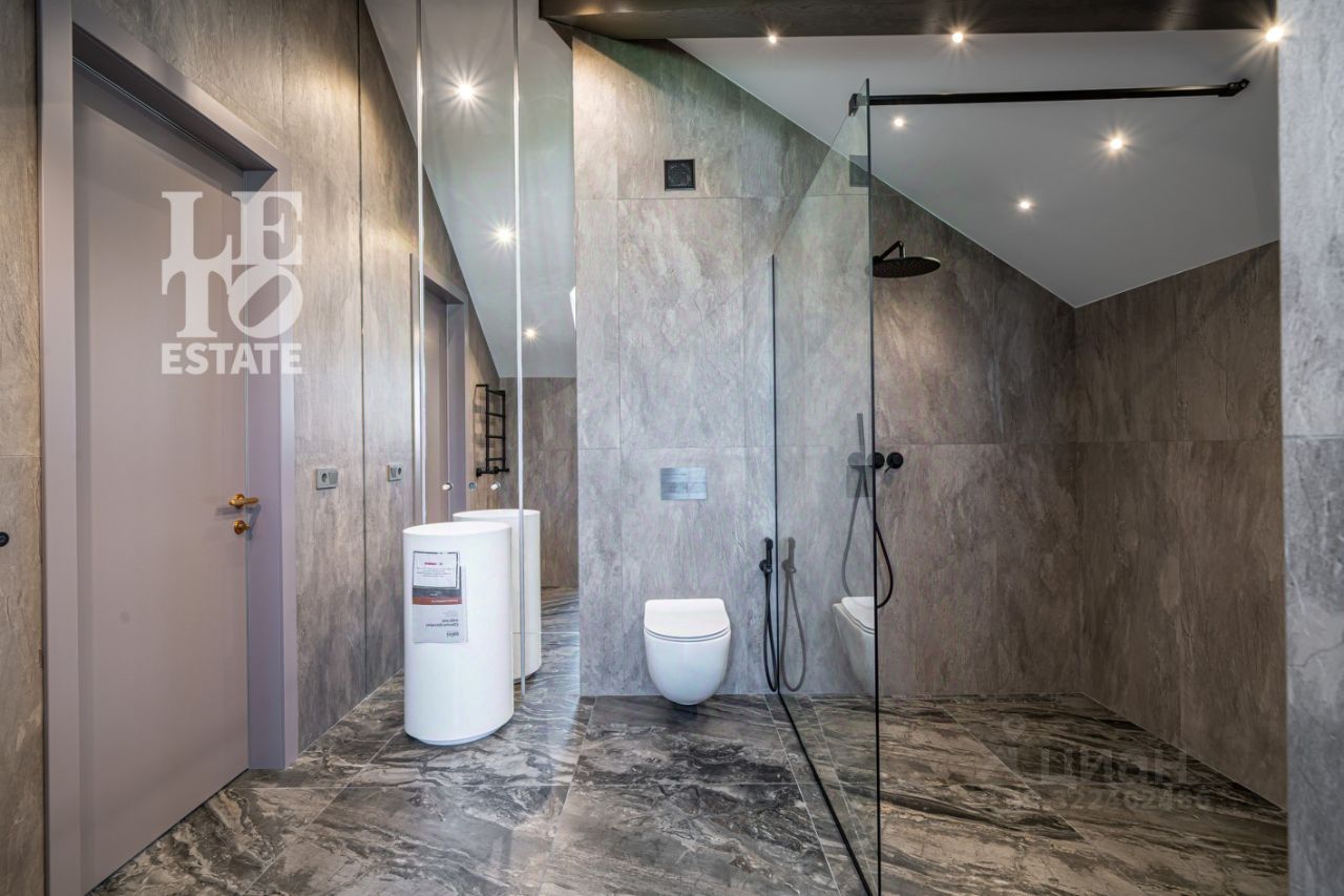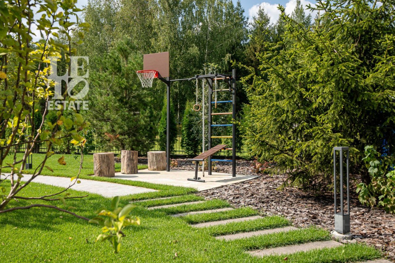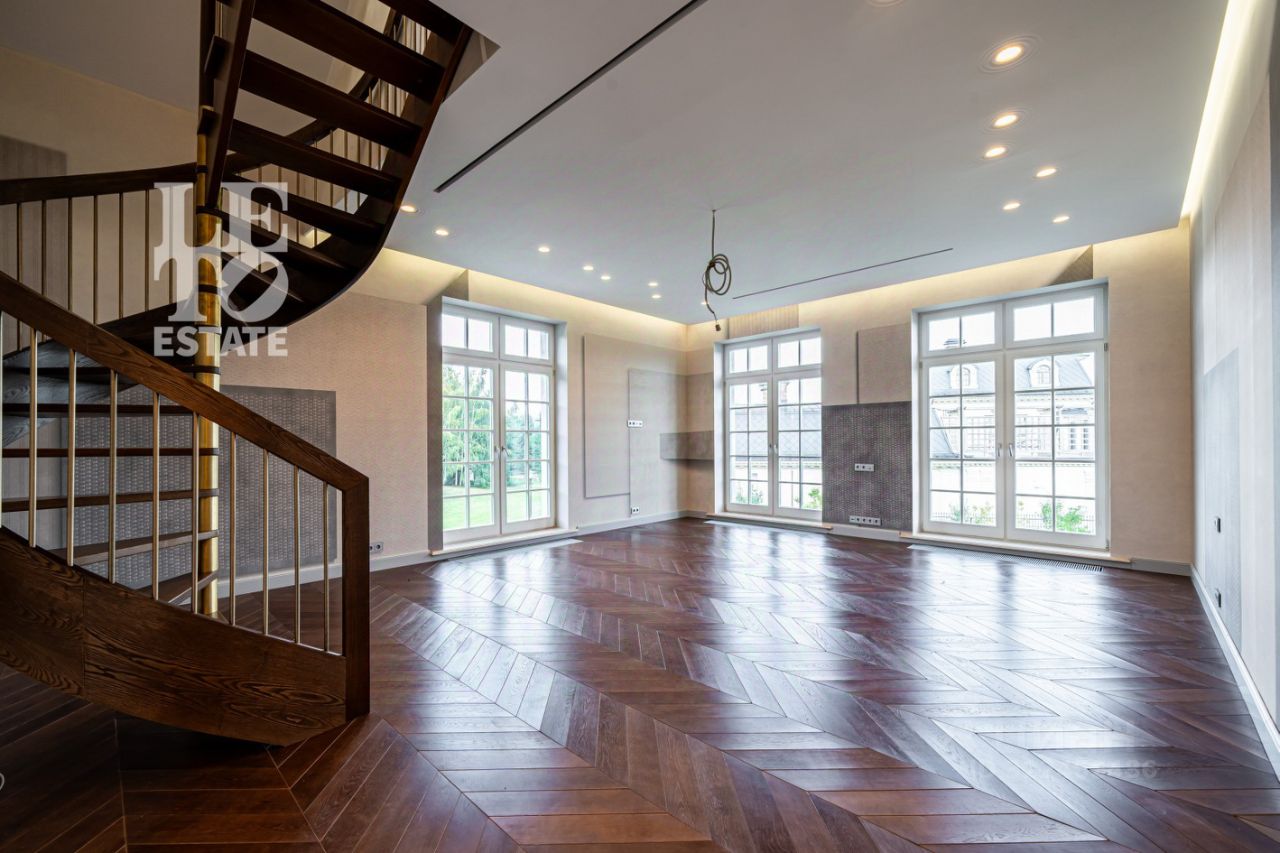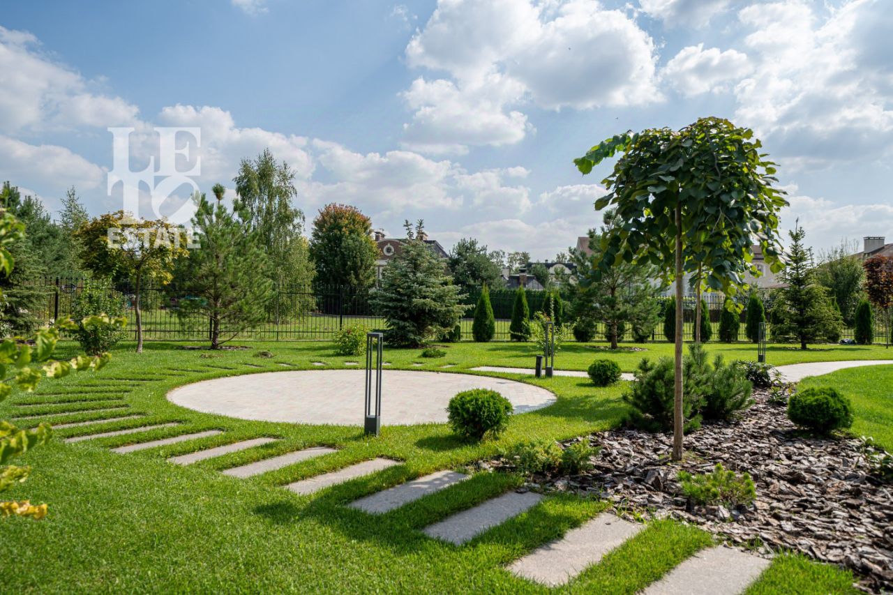 Фасад дома выполнен в лучших традициях английской классики, а к нему примыкает просторный гараж на четыре машиноместа. Для отдыха и приема гостей предусмотрены две роскошные террасы площадью 75 и 60 кв. м, а также уютная зона барбекю с обеденной группой. Ухоженный участок с ровным газоном и декоративными деревьями дополняет картину, а все центральные коммуникации гарантируют комфорт без хлопот.
