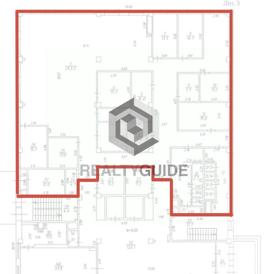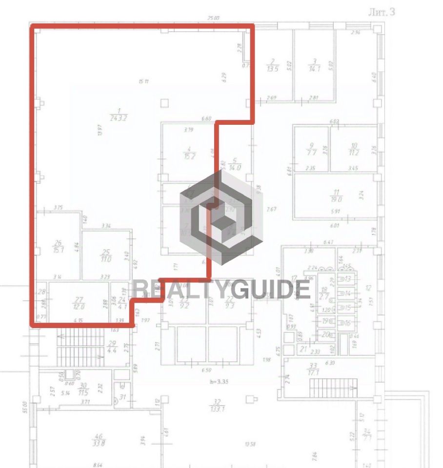 Предлагается в аренду офисный блок общей площадью 433.3 м2.