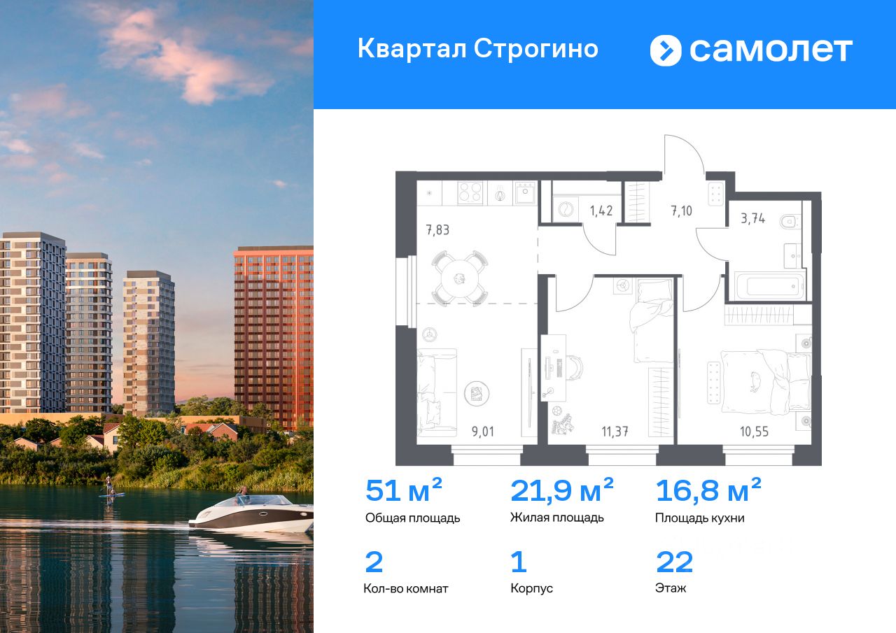Строим кварталы для жизни с заботой о будущем. Предлагается 2-комнатная квартира комфорт-класса 51,02 кв.м в корпусе 1 на 22 этаже, в ЖК ''Квартал Строгино'' Квартира с чистовой отделкой. Доступность дополнительных опций уточняйте у застройщика.