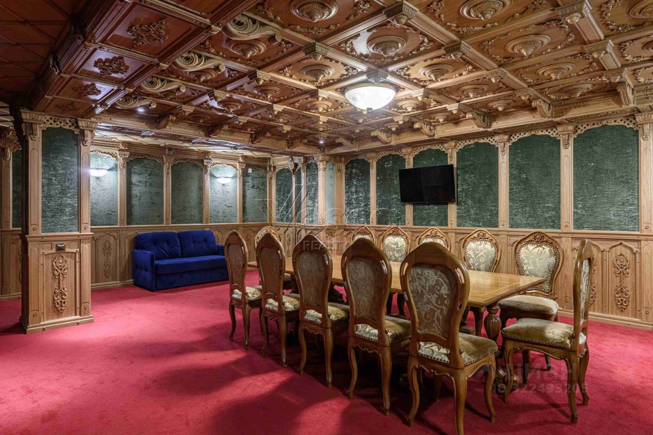 Цоколь: Бильярдная с баром (72), переговорная (55), винное хранилище (11), хаммам (19) с комнатой отдыха (28), гостевой с/у (5). Блок для персонала: спальня (10), кухня (14), с/у (3). Постирочная (14), оружейная (17), кладовые (16 + 9 + 11 + 9), генераторная (15), котельная (11), электрощитовая (9).