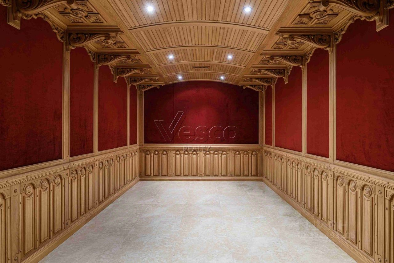 В доме: 7 спален, ТВ-гостиная, каминный зал со столовой, изолированная кухня, спа-комплекс с сауной и хаммамом, бильярдная, 2 бара, винная, библиотека, несколько помещений свободного назначения, блок персонала с отдельным входом, гараж на 3 м/м, многочисленные террасы и балконы, даже собственная смотровая.