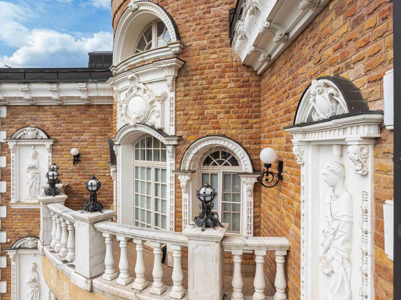 КОНСТРУКТИВ И МАТЕРИАЛЫ Кирпичный особняк, монолитные перекрытия, крыша - медь, фасад - натуральный камень и декоративная штукатурка, многочисленный декор в виде статуй, карнизов и балюстрад. Террасы отделаны мрамором.