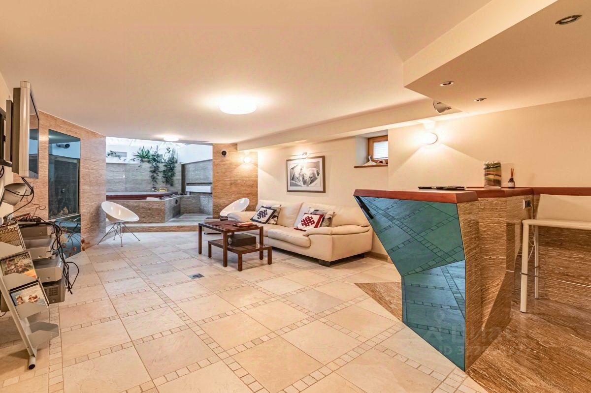 Поселок ''Петровский'' расположен на Ильинском шоссе в 15 км от Москвы, в окружении живописного подмосковного леса. Добраться до столицы можно по Новорижскому и Рублево-Успенскому шоссе, на которые с территории поселка имеются удобные выезды. Застройка поселка — особняки и таунхаусы. К продаже предлагается уютный коттедж общей площадью 500 кв.м. Участок 15 соток с ландшафтным дизайном, прудом и альпийской горкой,+ летнее барбекю с многофункциональной печью и удобной садовой мебелью. Уход за садом поддерживается профессионально , в сезон работает садовник, взрослые лиственные и хвойные деревья, цветники, перголы и лавочка в приватной части. Дом состоит из двух зон. Левая зона жилая 3 этажа и цокольный этаж.