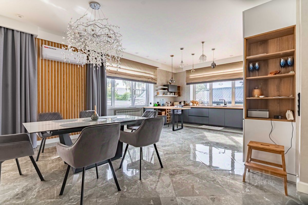 Прекрасный новый дом, полностью готовый к проживанию, идеально подходит для двух семей благодаря наличию двух отдельных входов. Это отличное решение для совместного проживания с родителями или друзьями. Интерьеры оформлены в современном дизайнерском стиле, а на первом этаже предусмотрены спальни для родителей или гостей. Просторные кухни, столовые и гостиные общей площадью почти 100 м² создают ощущение свободы. Высокие потолки и большие окна обеспечивают отличное естественное освещение. Дом построен с высоким качеством, с учетом всех современных стандартов: установлены теплые полы и кондиционеры. Также в доме подключены все городские коммуникации. Обратите внимание на удобный паркинг на цокольном этаже с отдельной комнатой для водителя.