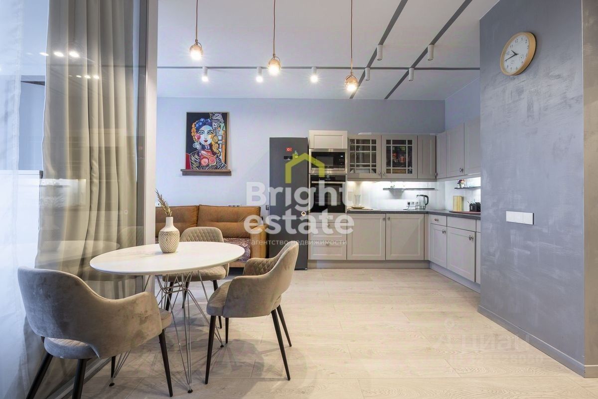 В квартире полностью выполнена стильная отделка. Нейтральная цветовая гамма помогает быстро настроиться на полноценный отдых после насыщенного событиями дня. Интерьеры выполнены с использованием дорогих натуральных материалов, есть авторские элементы и индивидуальный сценарий освещения. Квартира полностью подготовлена к Вашему оперативному переезду. Установлены премиальное оборудование и техника от мировых производителей.