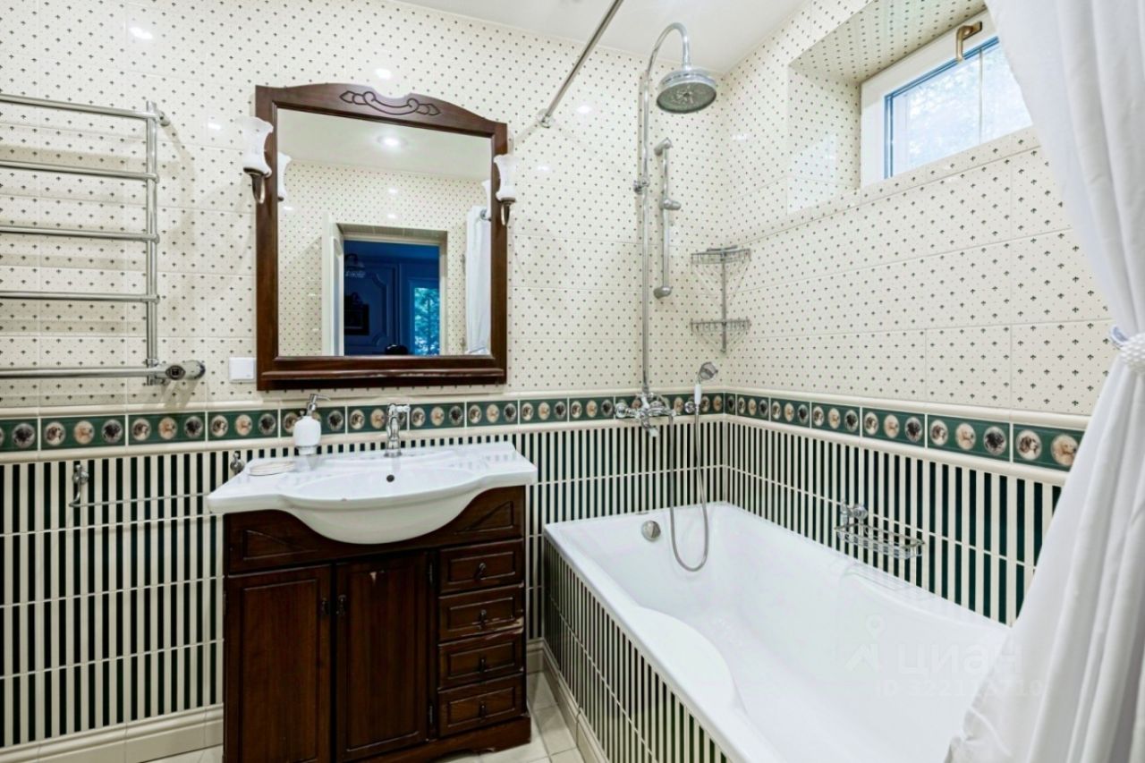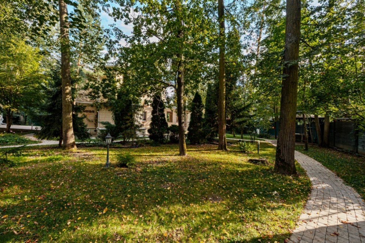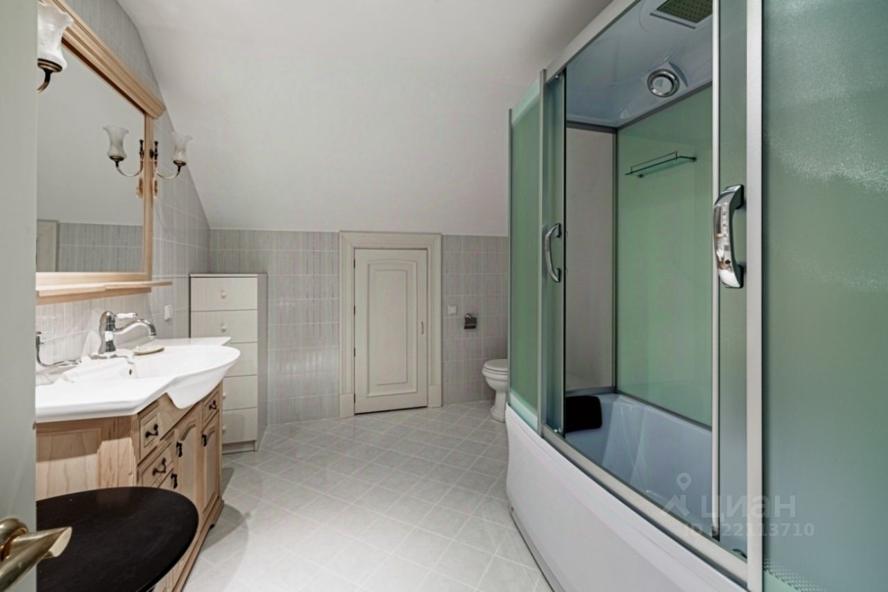 Лот 38973. Дом под ключ 380 кв.м. на участке 21.00 соток. Количество спален: 5. Коттеджный посёлок ''Пансионат Петрово-Дальнее'', Ильинское шоссе, 15 км от МКАД. ''Пансионат Петрово-Дальнее'' представляет собой живописную историческую территорию на слиянии 2-х рек и занимает более 60 га с реликтовым сосновым лесом. Инфраструктура пансионата включает в себя: основной корпус Пансионата с номерным фондом, бассейном, соляной пещерой, спортивным залом, открытые теннисные корты. На территории расположен современный спортивный стадион, где часто проходят ''рублевские'' турниры по футболу. Территория полностью благоустроена: велосипедные и прогулочные дорожки, беседки, скамейки, парковое освещение, площадки для барбекю. Также, есть пляж и волейбольная площадка на слиянии р.Истра и р.Москва. Все коммуникации в поселке центральные. Въездная группа с гаражом на 4 м/места. Дополнительно дом для охраны 180 кв м Цоколь: бассейн, хамам, с/у, комната для солярия, постирочная, гладильная, кладовая, бойлерная. 1 этаж: гостиная с камином, спальня, кухня с выходом на летнюю террасу, с/у. 2 этаж: хозяйская спальня с с/у, 2 небольших спальни, с/у. Мансарда: 2 спальни, с/у.