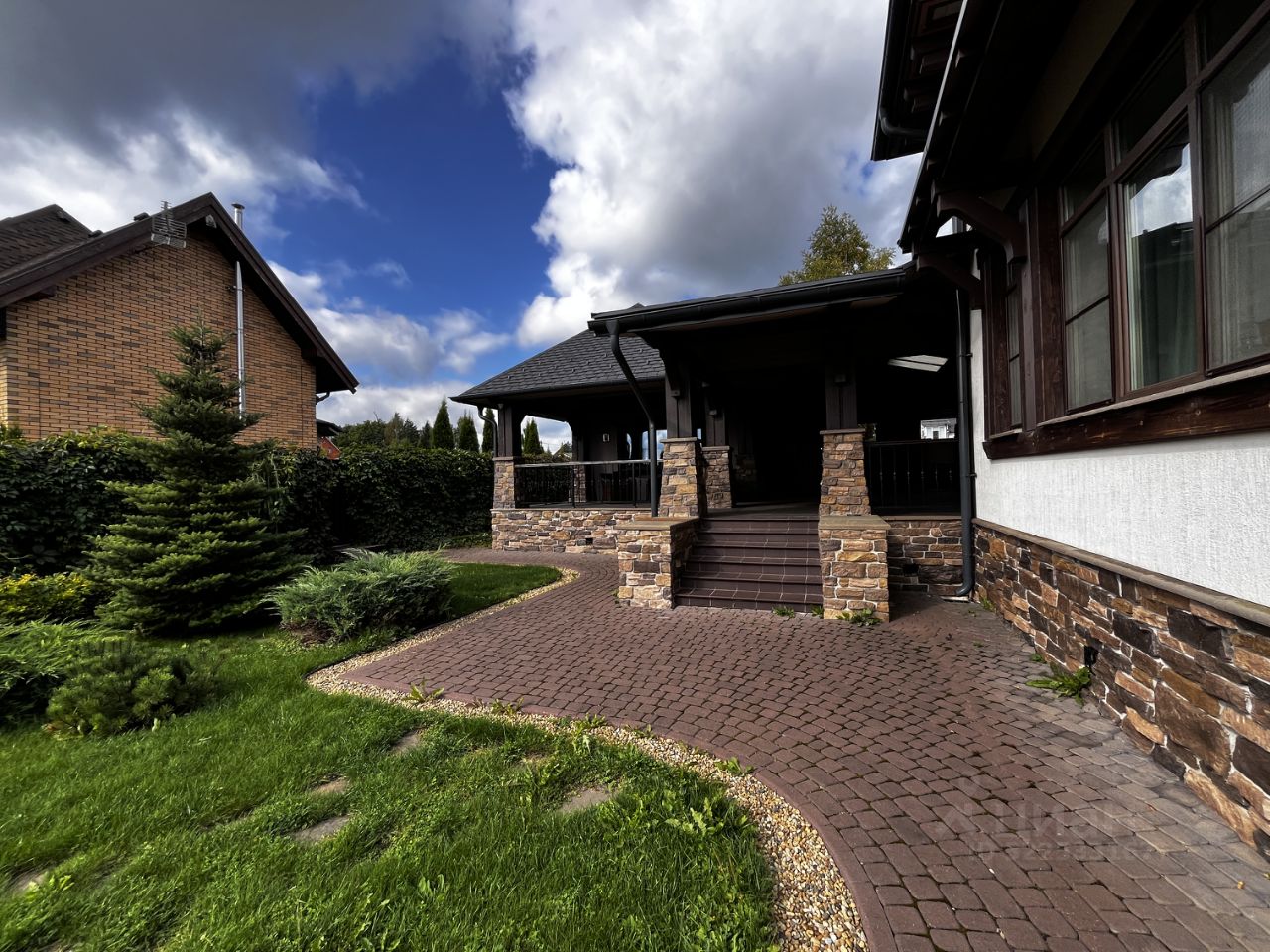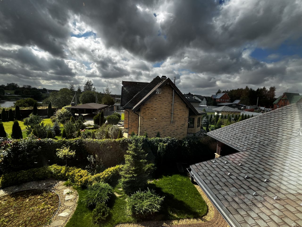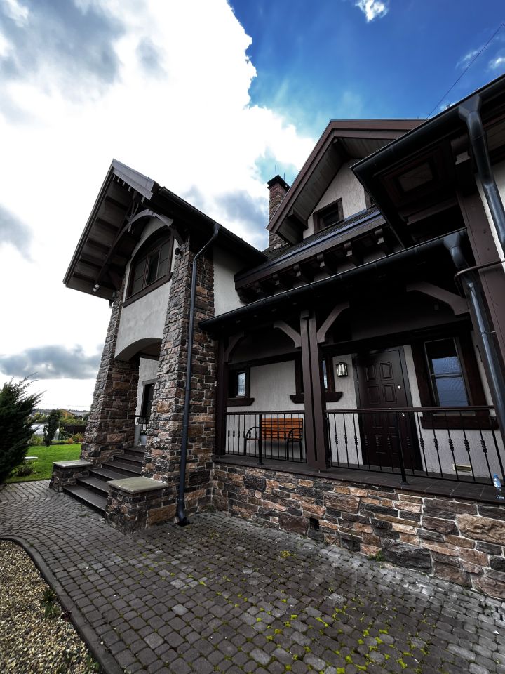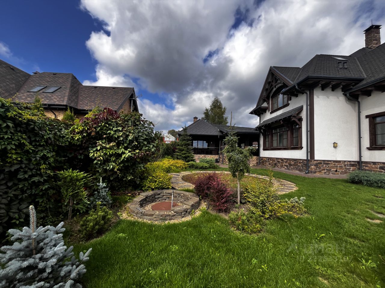 Продается дом в КП Огникого-1 на участке 18 соток 3 здания: гараж, спа зона, основной дом. сделан красивый и продуманный ландшафт. есть выход к воде.