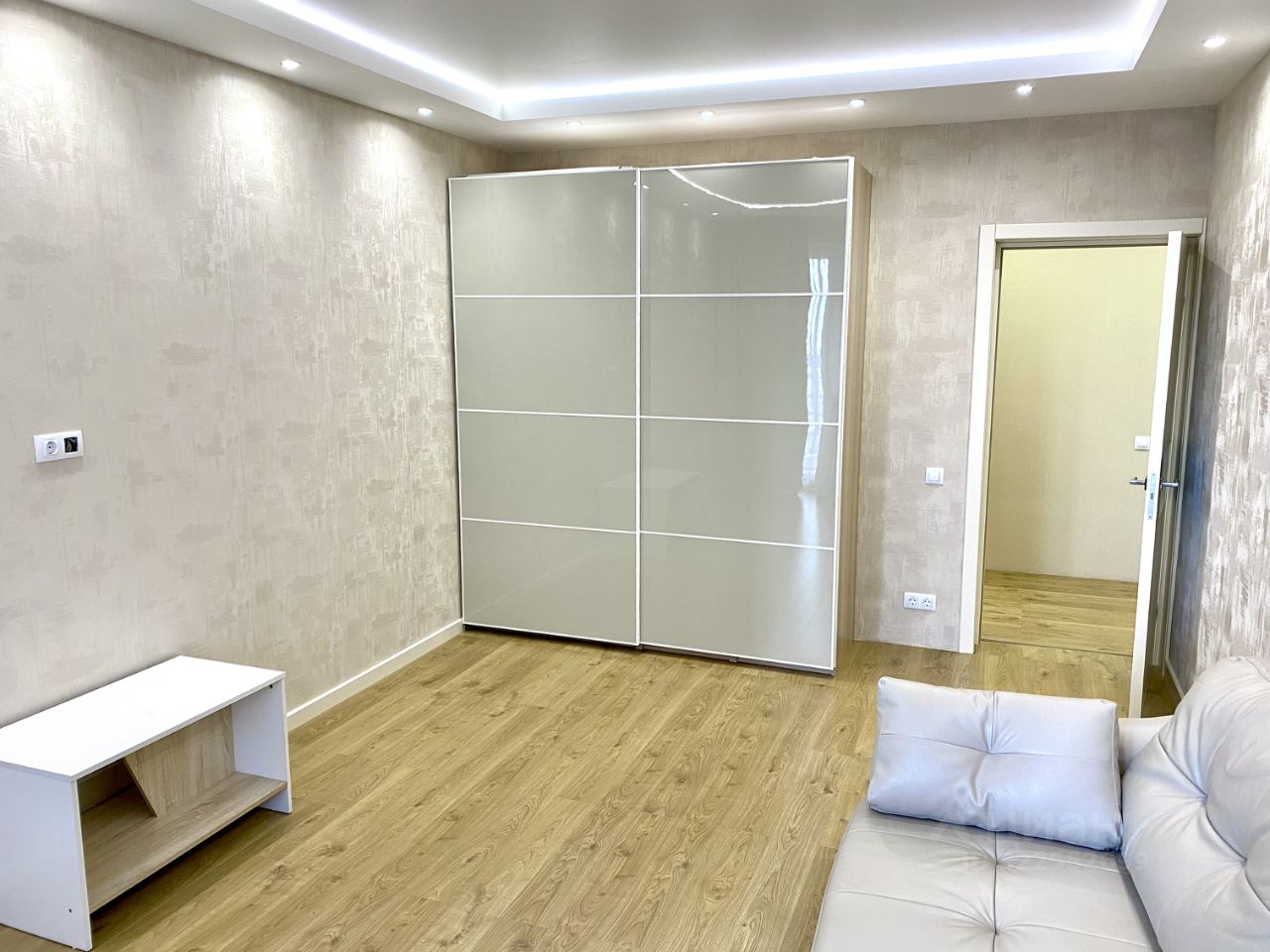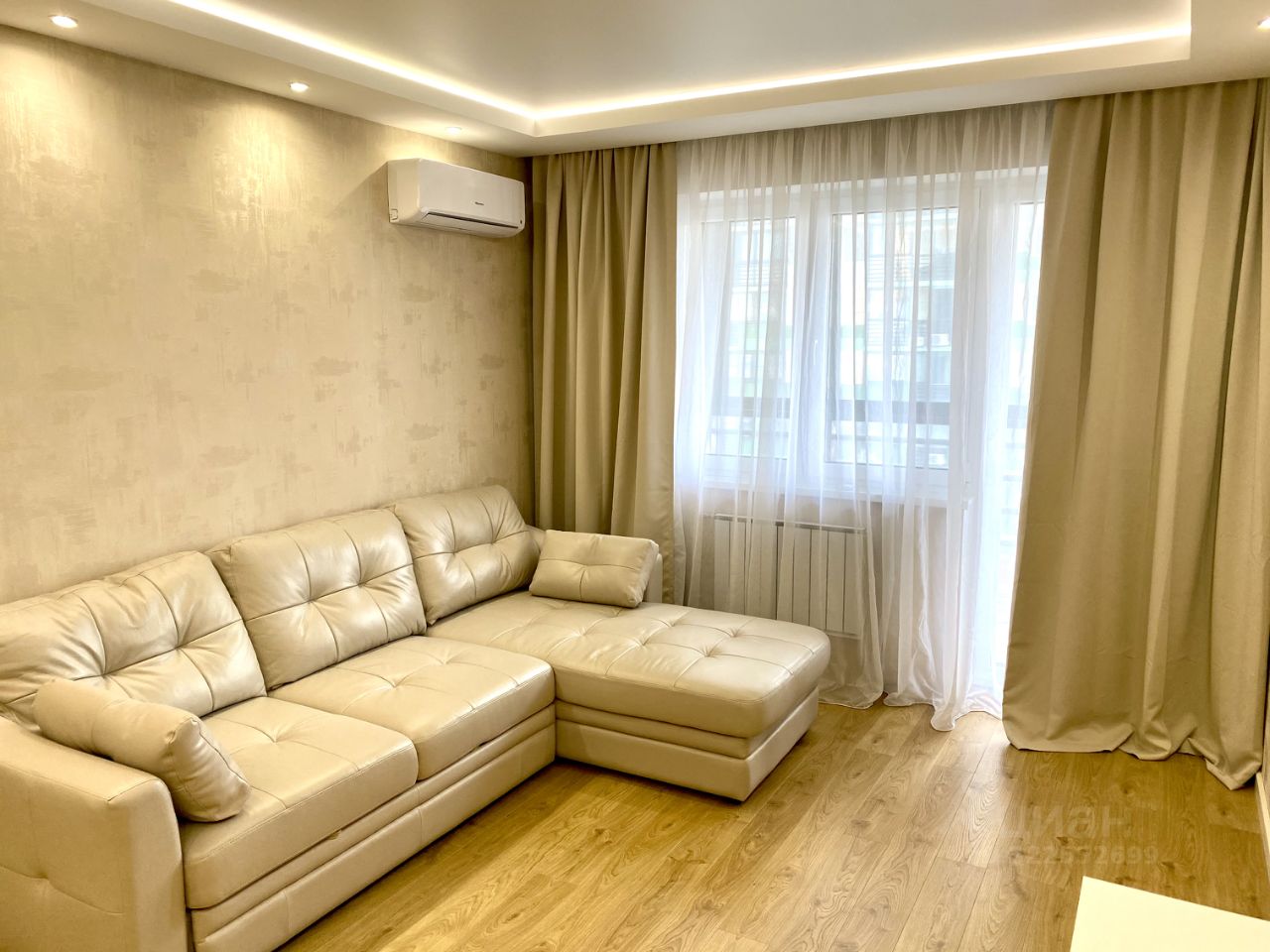 В комнате комфортный угловой диван, шкаф-купе, тумба, ЖК телевизор ( на фото его нет).