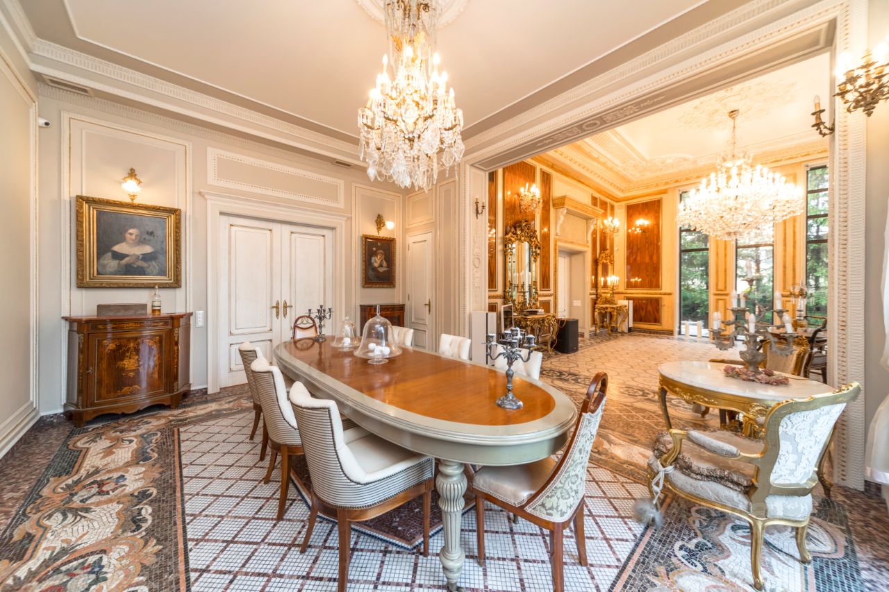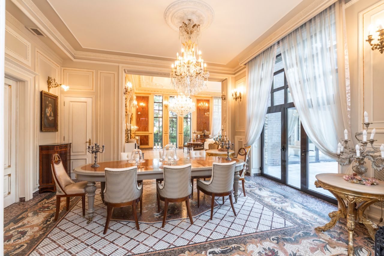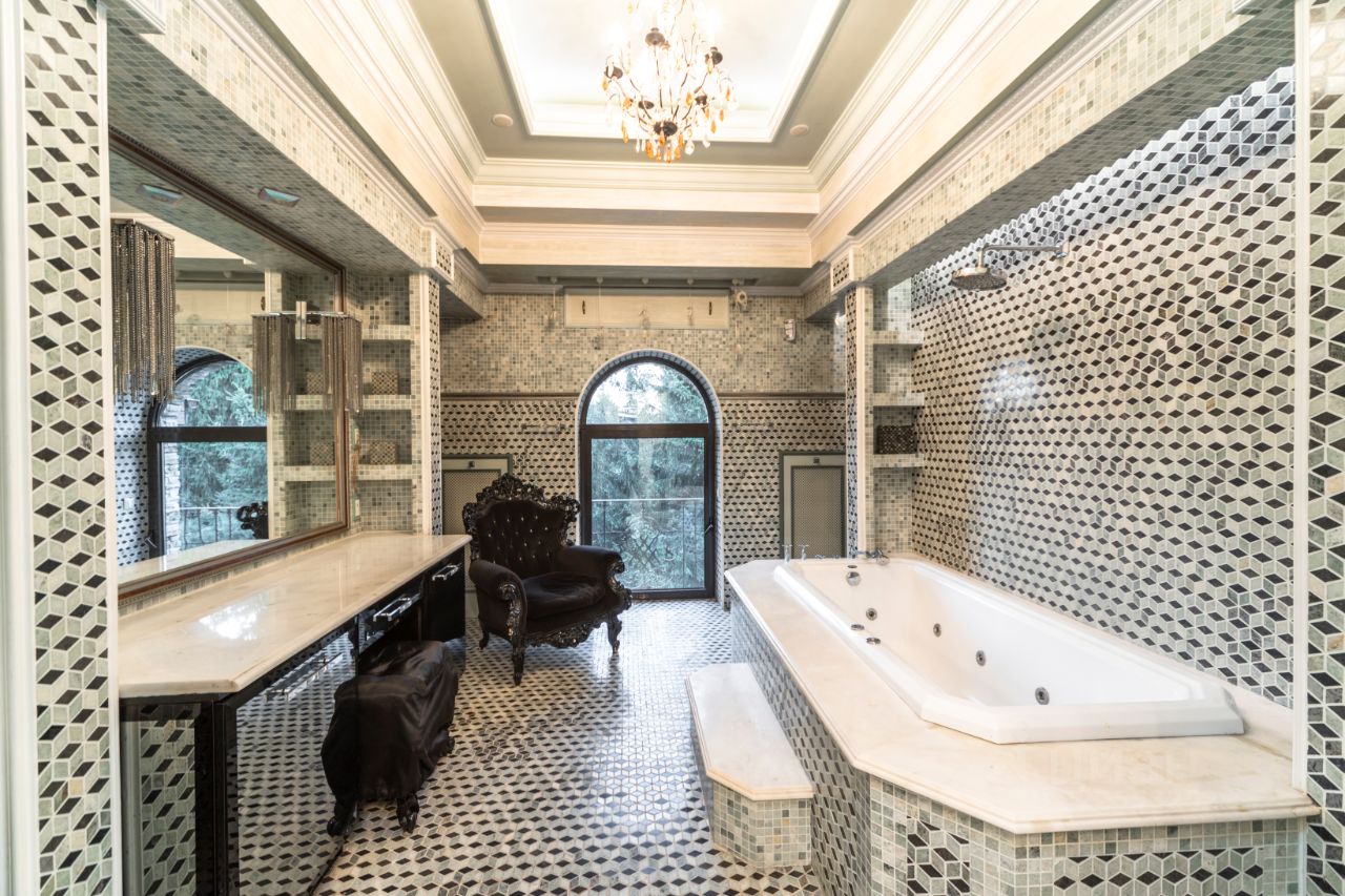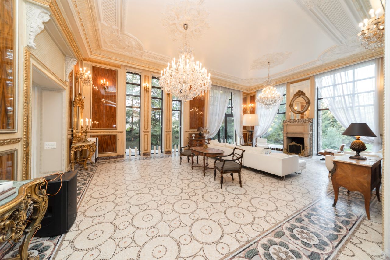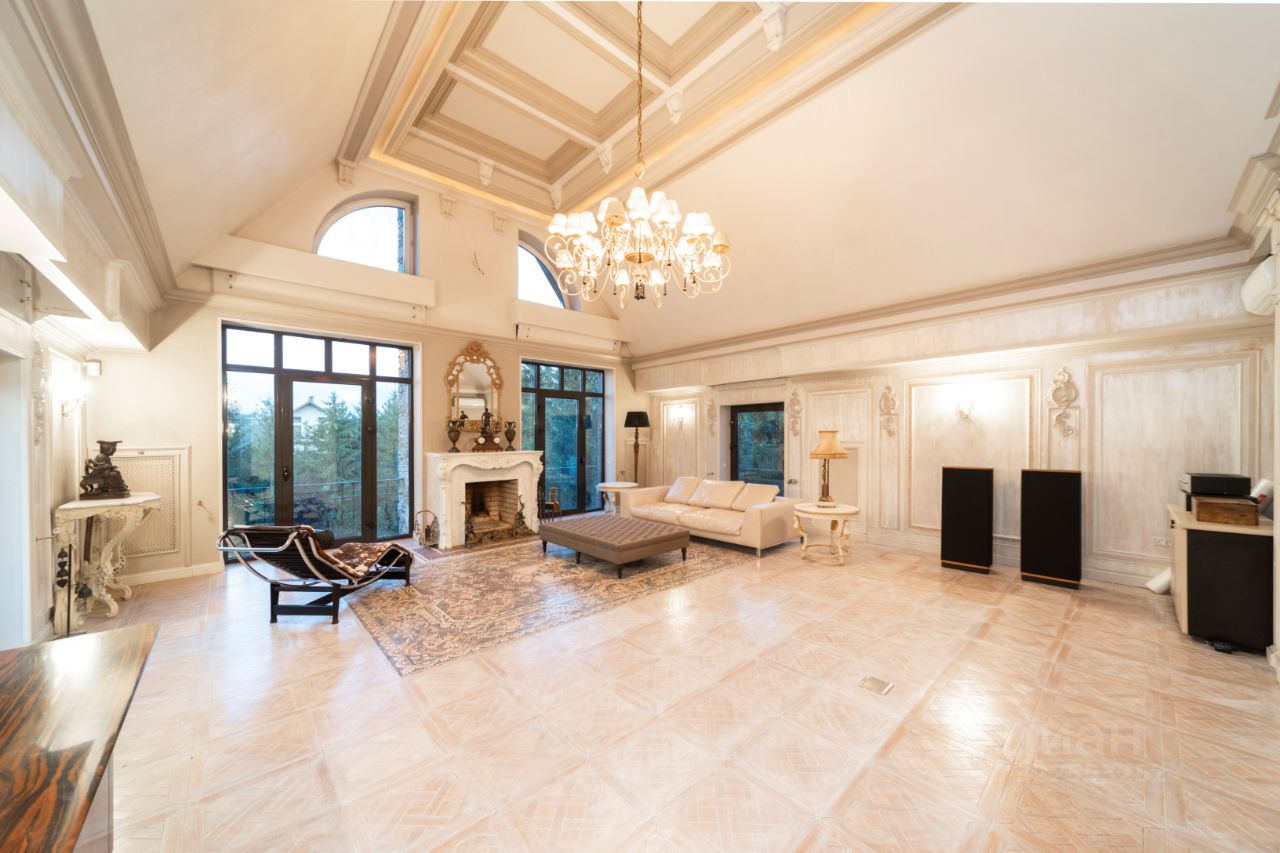 Дом площадью 860 м² расположен на берегу Москвы-реки с великолепным видом на Лохин остров и заповедные ландшафты, на участке 35 соток, утопающем в соснах, фруктовых деревьях и зарослях гортензий. Интерьер дома погружает вас в аутентичную атмосферу мебели и предметов интерьера XVIIIXIX веков с элегантным мостиком к лучшим образцам итальянского дизайна в области мебели, создавая неповторимый ансамбль изысканности и уюта. Первый этаж дома включает просторную гостиную с камином, две кухни, два входа, бассейн, турецкую баню, отдельную комнату свободного назначения и лифт. На втором и третьем этажах расположены 7 комнат и 6 ванных комнат, а также 5 просторных гардеробных, которые могут быть использованы как спальни или для иных целей.