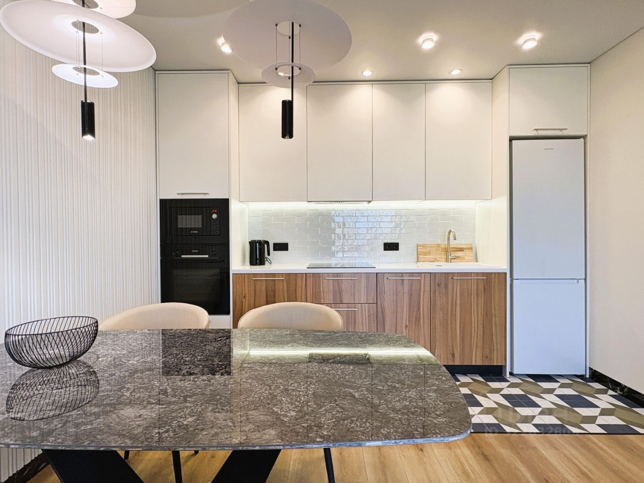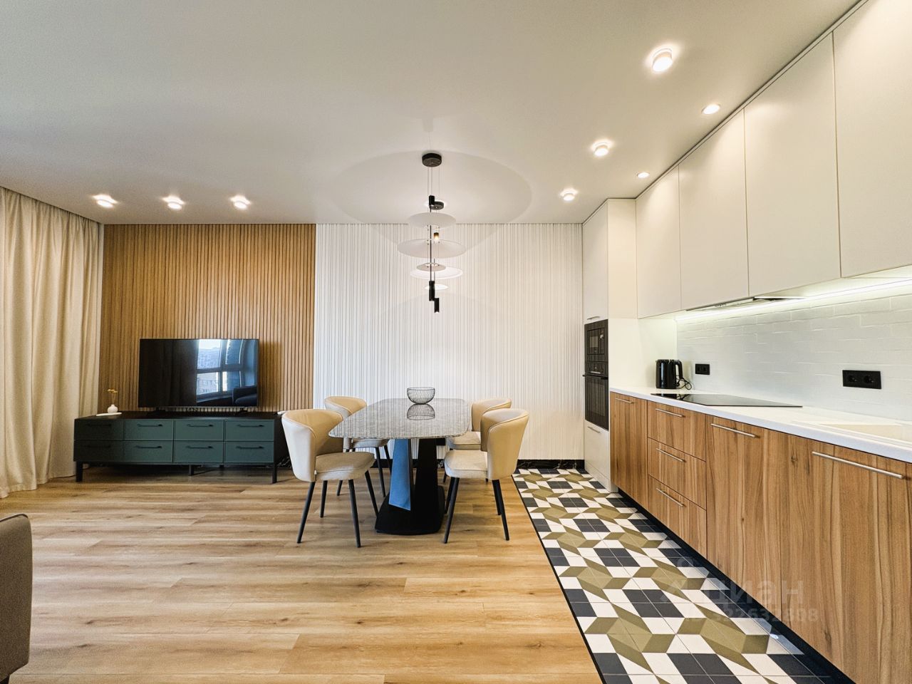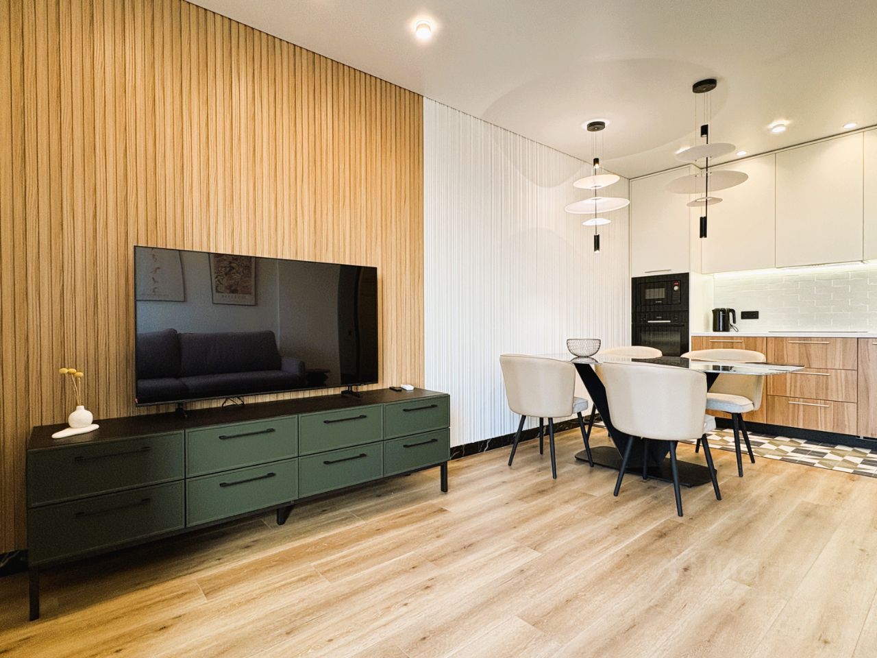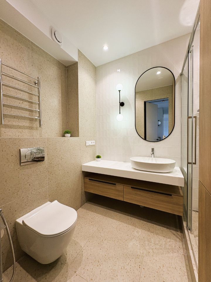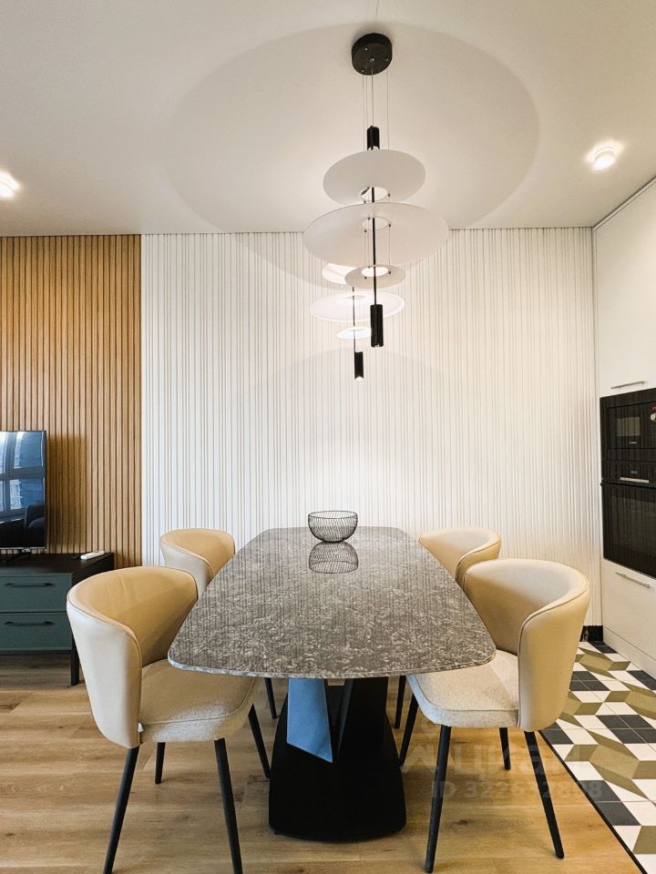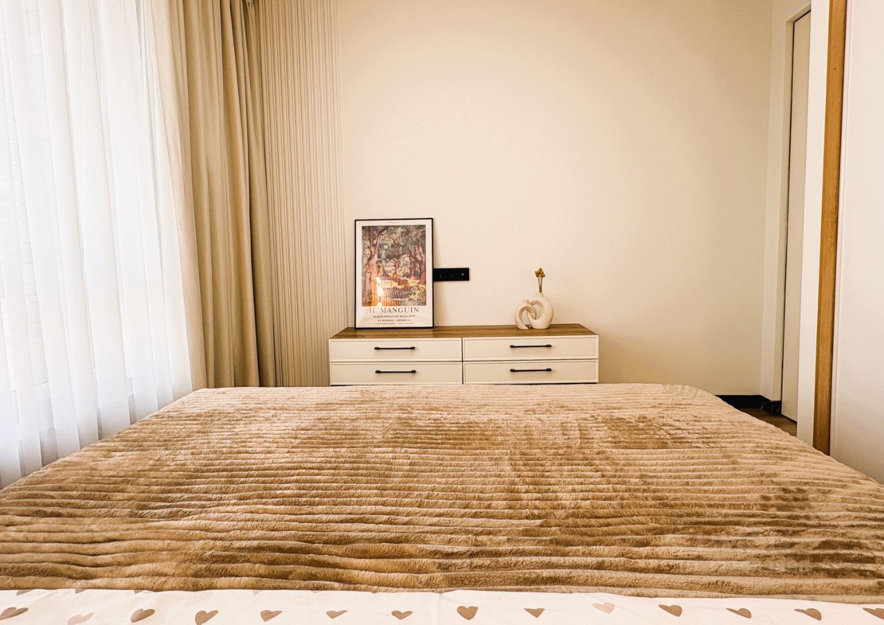 КВАРТИРА: Дизайнерский ремонт плюс функциональная планировка. Здесь всё продумано до мелочей: - большой санузел с душевой системой, стиральной машиной BOSCH и хозяйственным шкафом, - вместительная гардеробная с системой хранения, - просторная кухня-гостиная с уютным диваном и большим телевизором Samsung. Современная кухня с техникой BOSCH и большим столом из керамогранита, - спальня с большой кроватью (180 см) и вместительным шкафом для одежды, - комната с раскладным диваном, шкафом для одежды, которая может быть кабинетом, детской или гостевой. Кондиционер, смарт-телевизор, стиральная и посудомоечная машина, и прочая необходимая бытовая техника. Скоростной интернет. Есть возможность арендовать парковочное место.