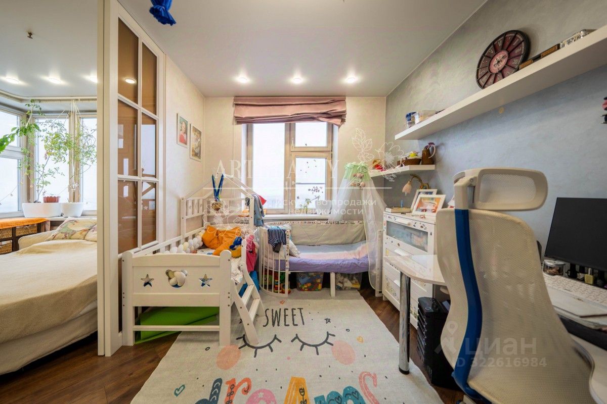 Квартира для комфортного проживания со множеством плюсов: - Потрясающий вид на Нижнемякининскую пойму и Живописную бухту на Москва-реке. - Располагается на 43-44м этаже. - Грамотно продуманная планировка: на первом уровне кухня и спальня, на втором две детских комнаты. Каждый уровень со своим сан узлом и гардеробной комнатой для хранения вещей. - Квартира полностью оборудована мебелью и техникой необходимой для проживания.