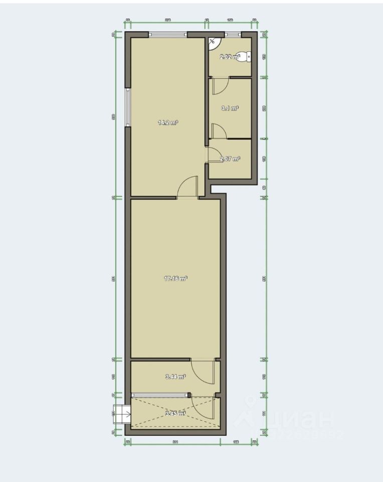 Общая площадь 41.2м2 - самая востребованная коммерческая площадь, есть возможностью увеличить площадь на 6м2 за счет большой входной группы-террасы.