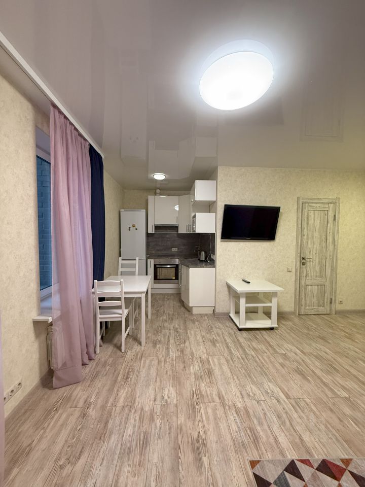 Хороший евроремонт. Квартира укомплектована всем необходимым. Кухня со встроенной бытовой техникой: холодильник, варочная панель, духовой шкаф, вытяжка, СВЧ-печь, электрический чайник. Большой совмещённый санузел с ванной и стиральной машиной. В комнате раскладывающийся двуспальный диван, телевизор, стол-трансформер, Wi-Fi. В прихожей вместительный шкаф-купе с большим зеркалом, гардеробная зона.