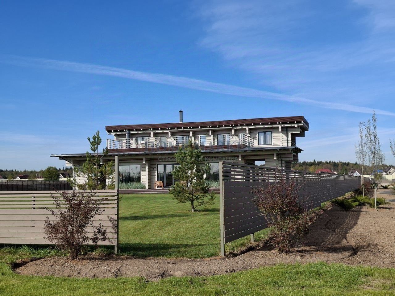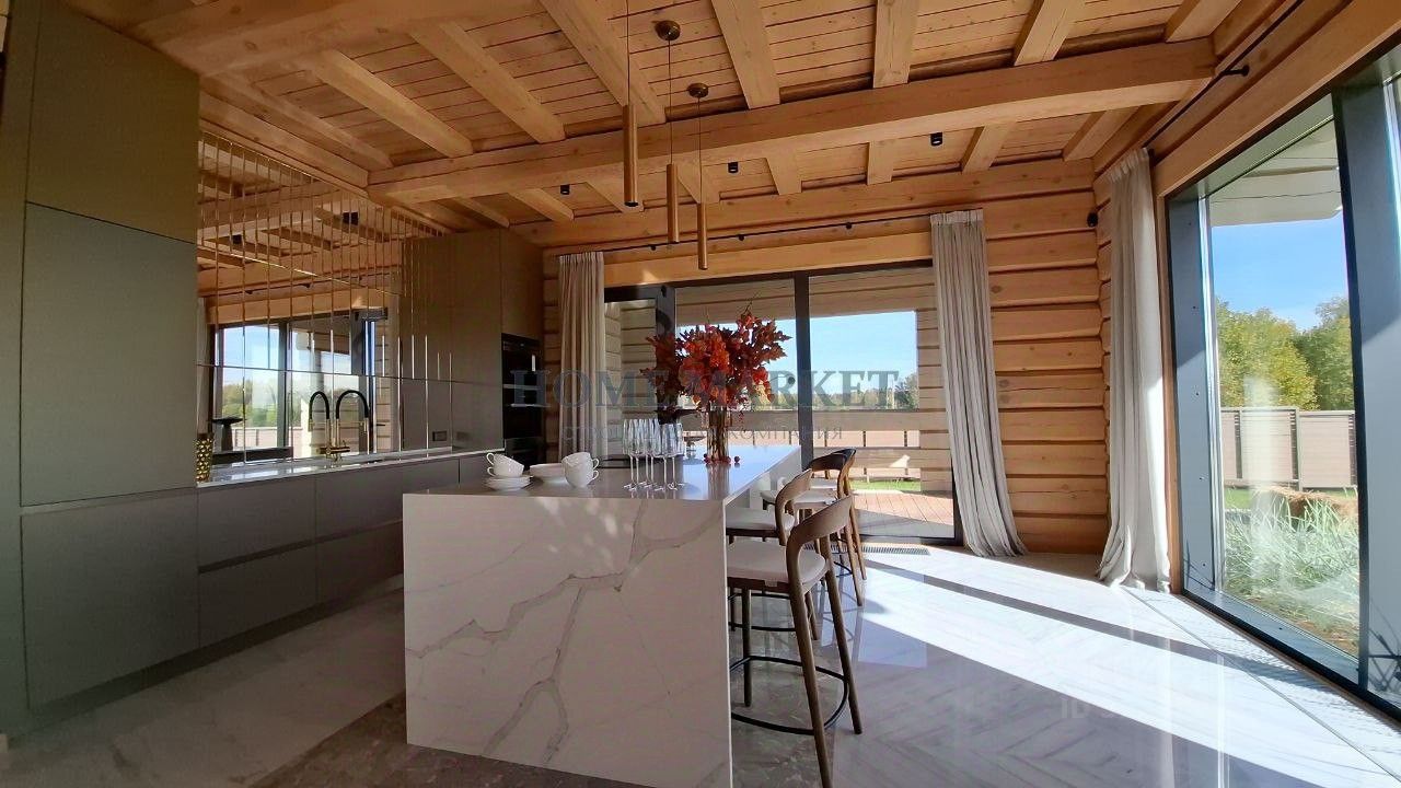 Также следует обратить внимание на уникальность самого проекта, дом выполнен из экологически чистых материалов - лафета, клееного бруса и хвойных пород деревьев: сосны, ели, лиственницы и кедра, что является собой продолжением некоторой чистоты Природы, которая открывается будущему собственнику в этом живописном уголке. Дизайн дома также индивидуален и выполнен очень гармонично, уютно с продуманностью до мелочей, а также уникальной лестницей на следующий этаж. Крыша дома ориентирована еа комфорт и простор, является также площадкой для отдыха, с лежаками, зоной отдыха. Въезд во двор с двух сторон, что очень удобно, можно попасть сразу в нужную часть дома. Холодными зимними вечерами в уютной гостиной с красивым видом на сад вас будет согревать камин. Дом расположен на участке площадью 23 сотки.