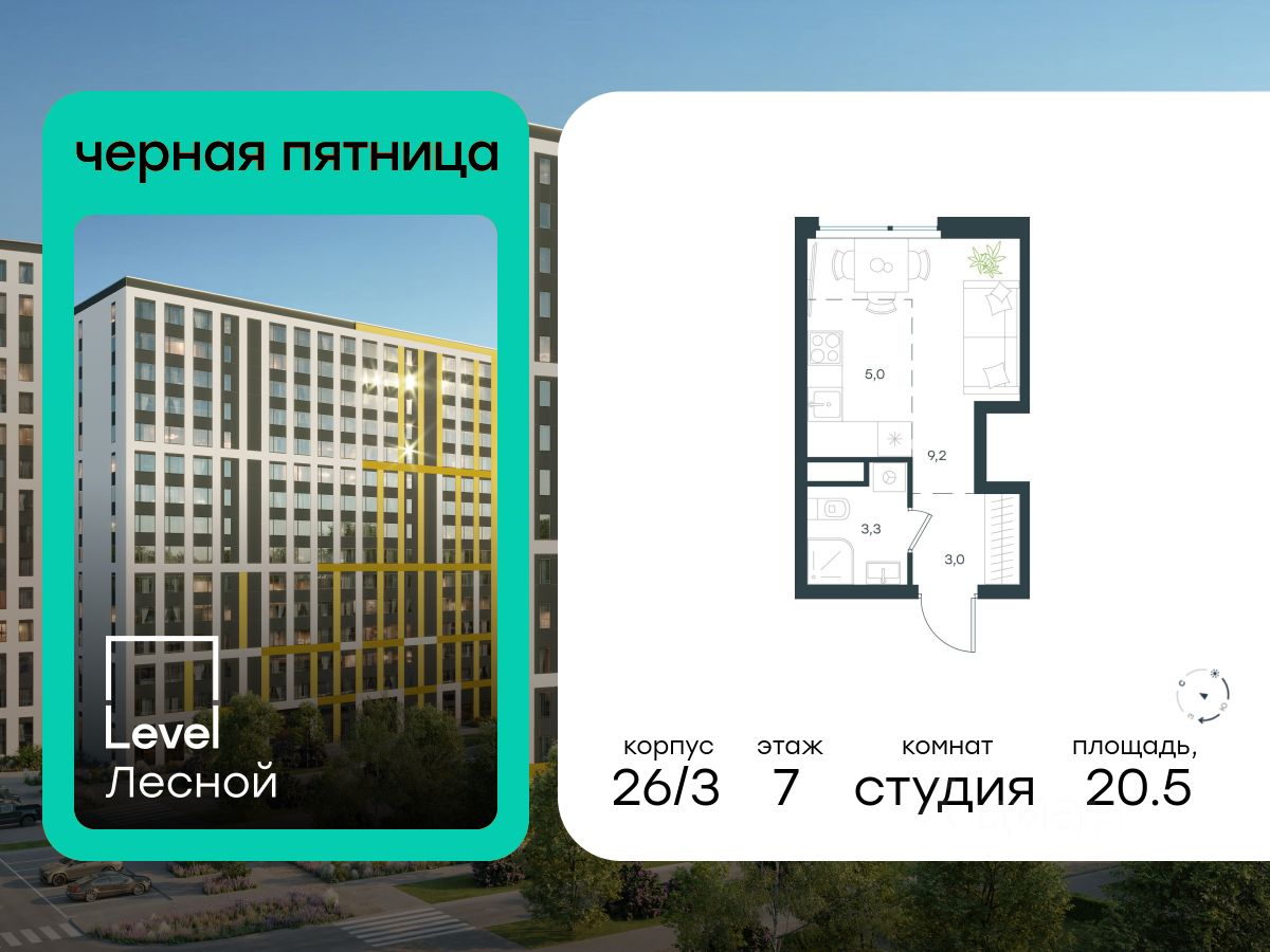 В районе, утопающем в густой зелени лесов, многочисленных парков и скверов, продаётся студия площадью 20.50 кв.м без отделки. Квартира расположена на 7 этаже в жилом комплексе комфорт-класса Level Лесной (компания Level Group/Левел групп).