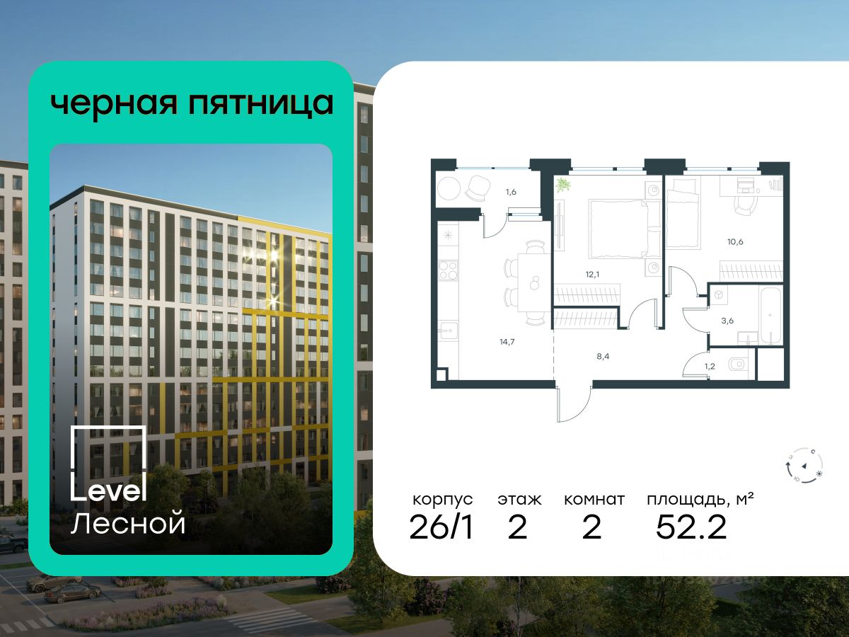 В районе, утопающем в густой зелени лесов, многочисленных парков и скверов, продаётся 2-комнатная квартира площадью 52.20 кв.м с отделкой white box. Квартира расположена на 2 этаже в жилом комплексе комфорт-класса Level Лесной (компания Level Group/Левел групп).