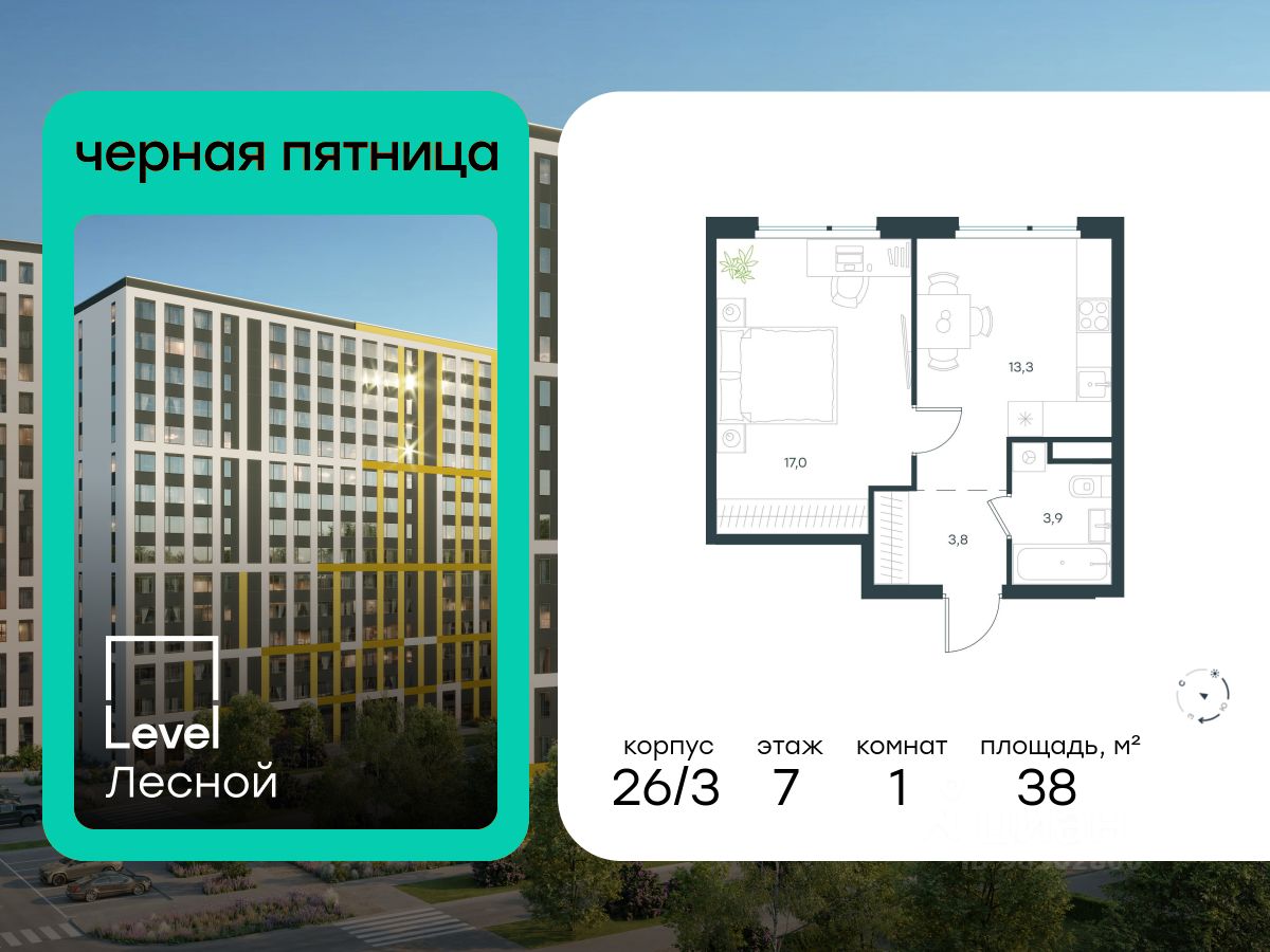 В районе, утопающем в густой зелени лесов, многочисленных парков и скверов, продаётся 1-комнатная квартира площадью 38.00 кв.м без отделки. Квартира расположена на 7 этаже в жилом комплексе комфорт-класса Level Лесной (компания Level Group/Левел групп).