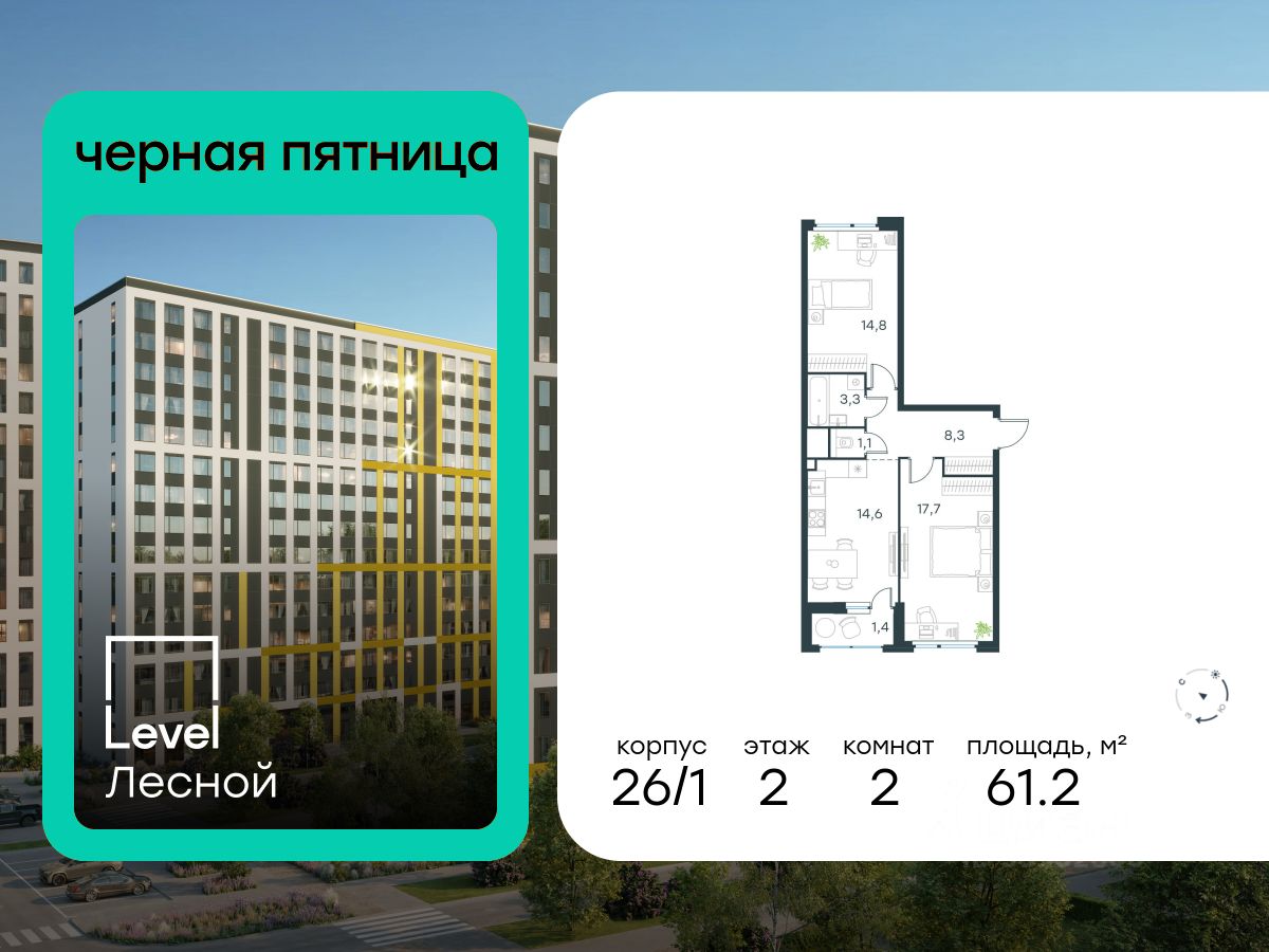 В районе, утопающем в густой зелени лесов, многочисленных парков и скверов, продаётся 2-комнатная квартира площадью 61.20 кв.м с отделкой white box. Квартира расположена на 2 этаже в жилом комплексе комфорт-класса Level Лесной (компания Level Group/Левел групп).